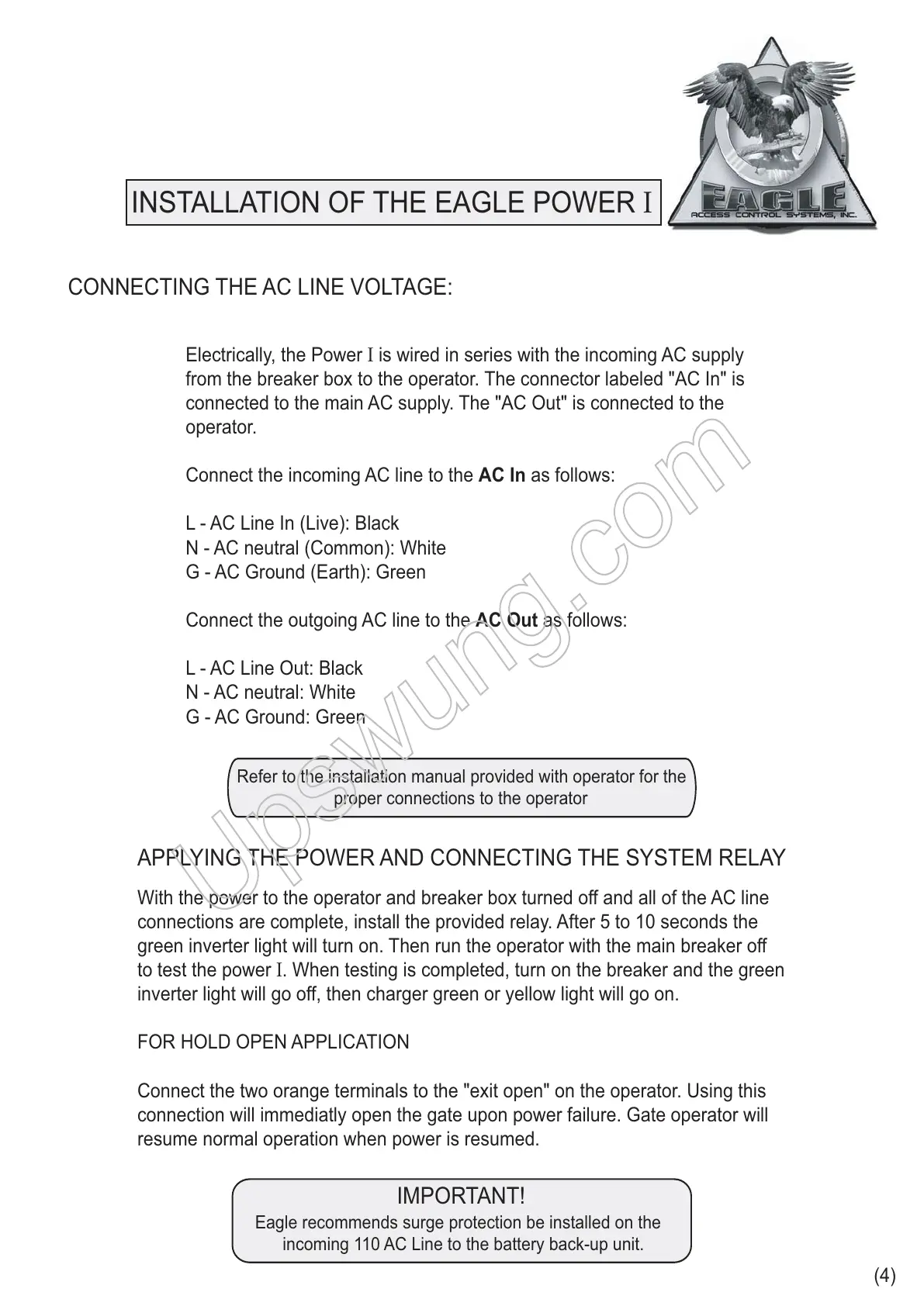 APPLYING THE POWER AND CONNECTING THE SYSTEM RELAY