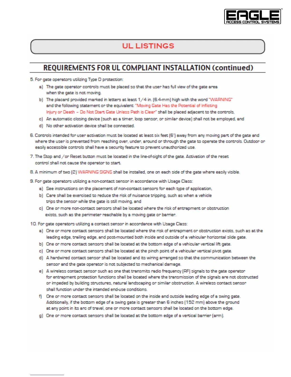 Eagle Access Control Systems, Inc. www.EagleOperators.com