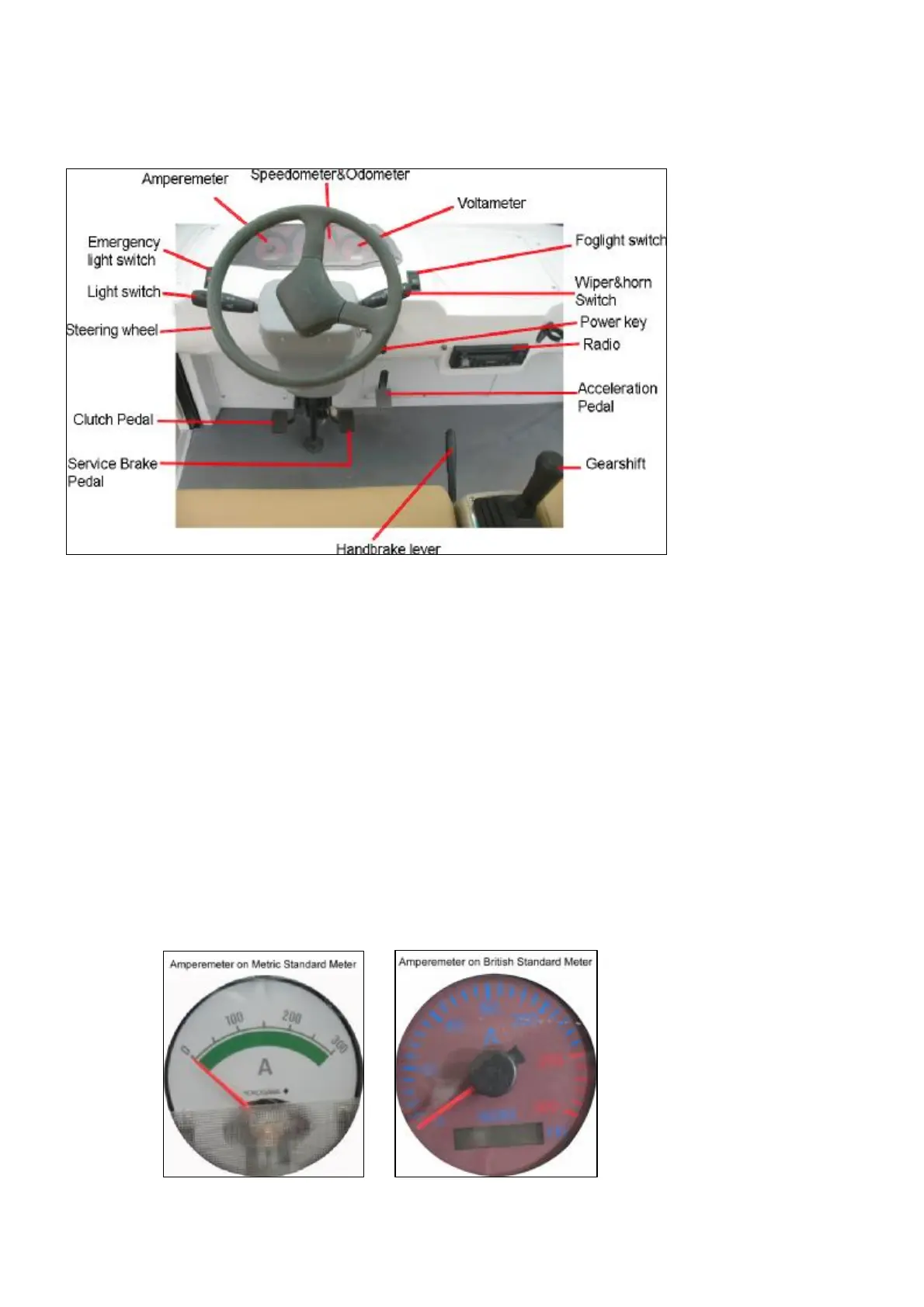 Amperemeter —— Indicate the current of the working vehicle. And on the British one, there is also a hour