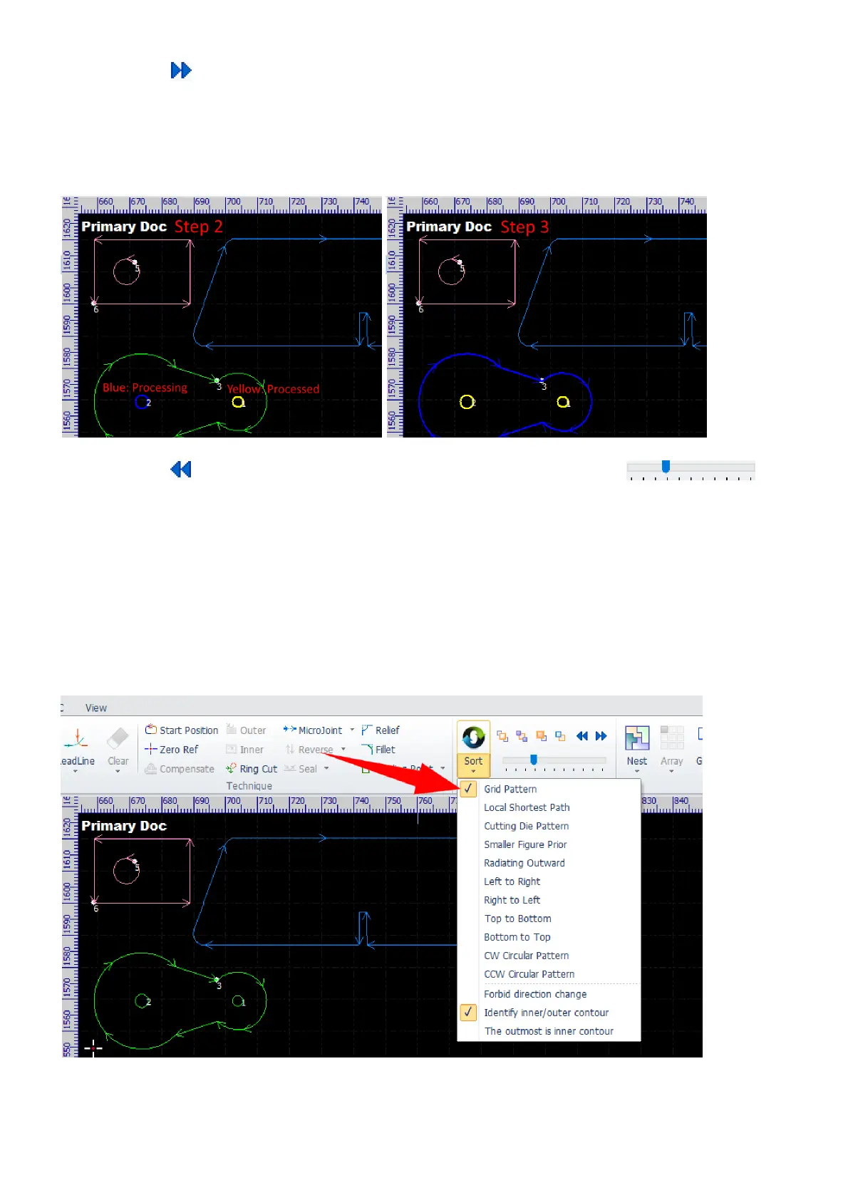 back and forth to go through the processing quickly when there are many objects, e.g. in a nesting result.