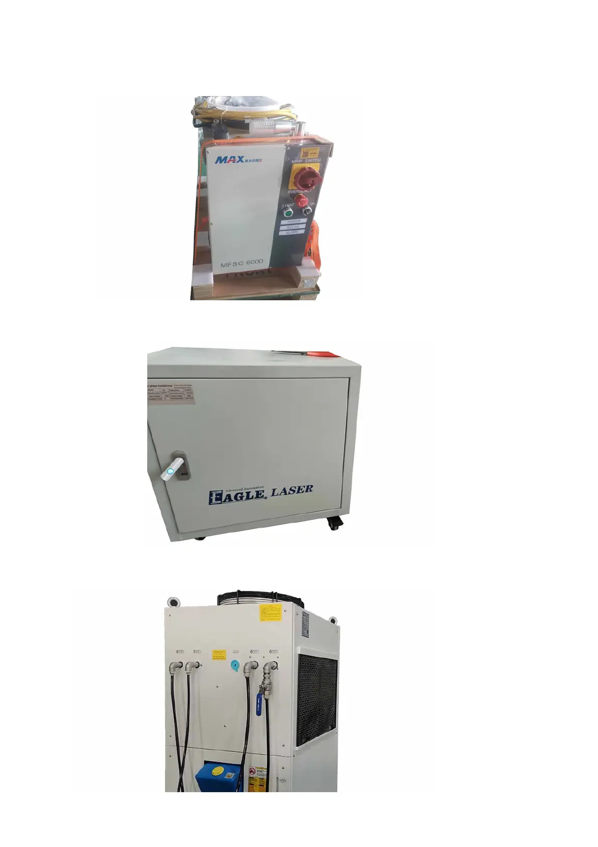 4. (For 6kW only) Remove the packing materials on the fiber laser, and set it to the back side of the