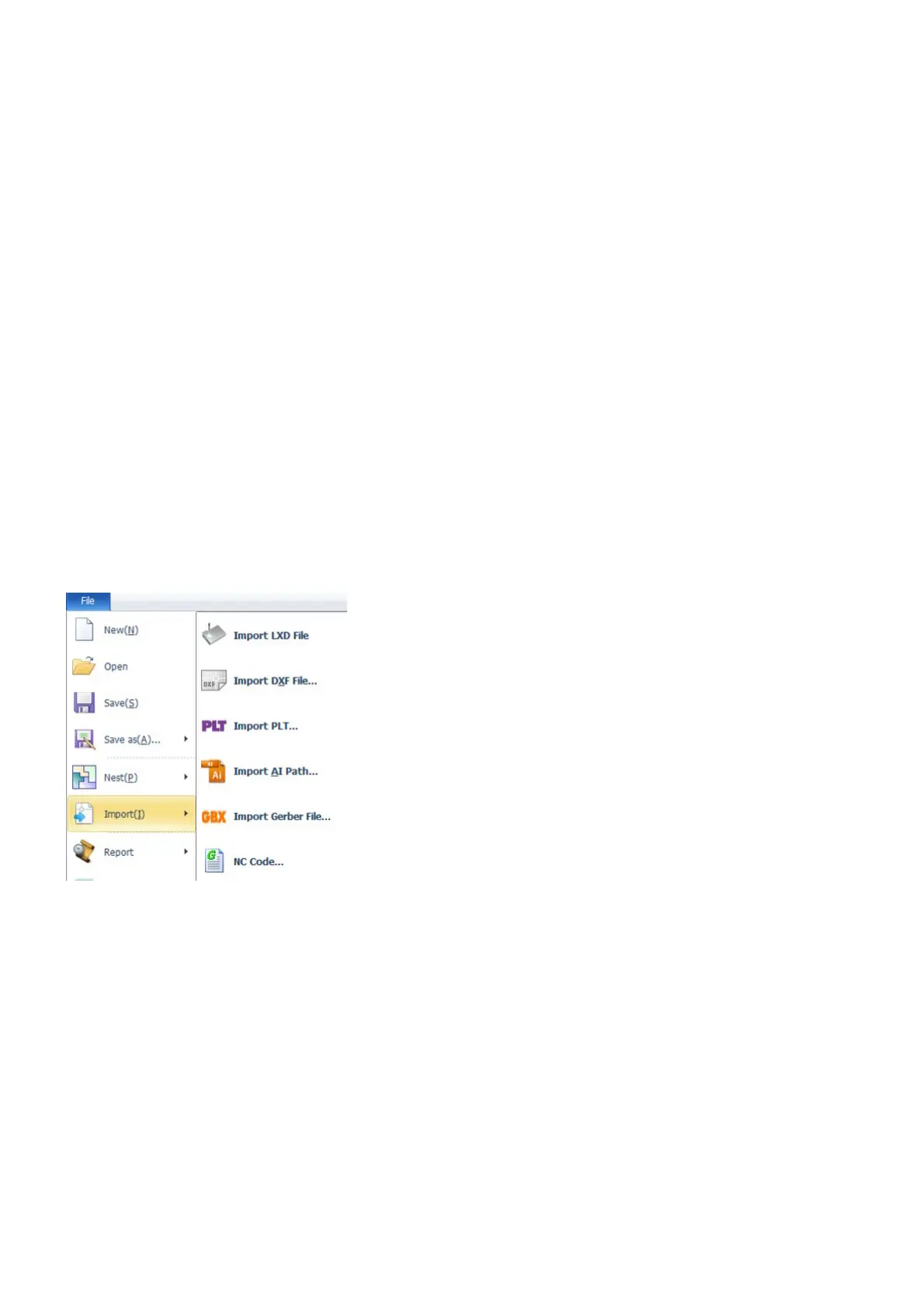 In File menu, click on Import, and then click on the subitem according to the format of the parts file, to