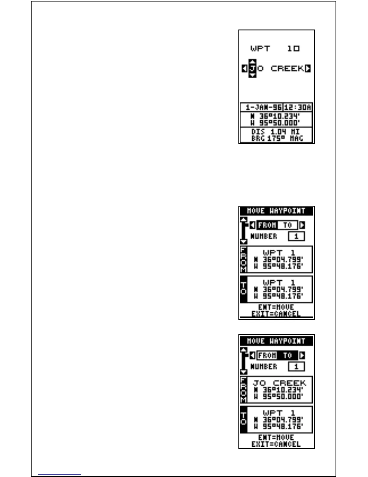 waypoint name. Press the ENT key to accept this name, the WPT key to