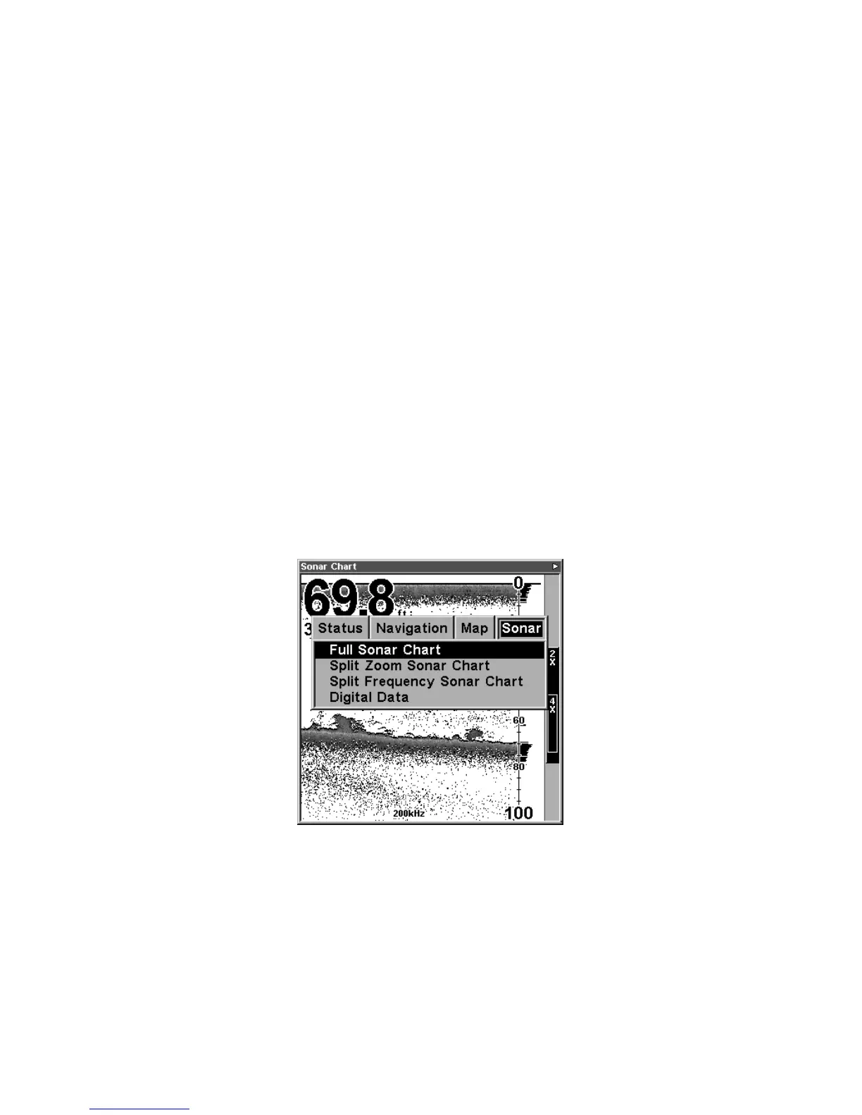 Pages Menu, showing sonar chart display options.