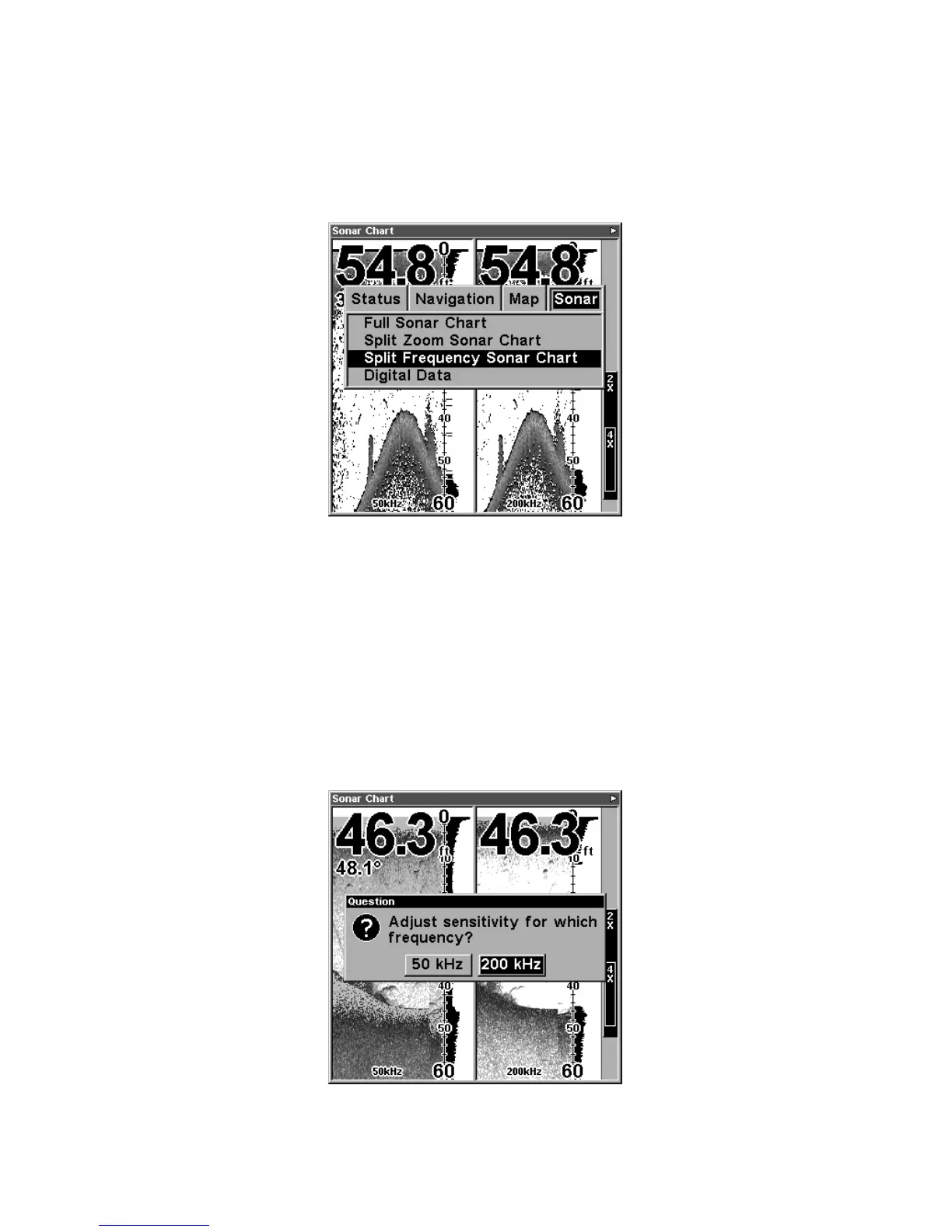 Split Frequency Sonar Chart page, with