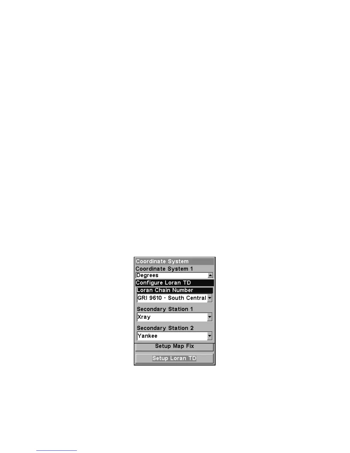 lecting "Setup Loran TD" at the bottom of the "Coordinate System"