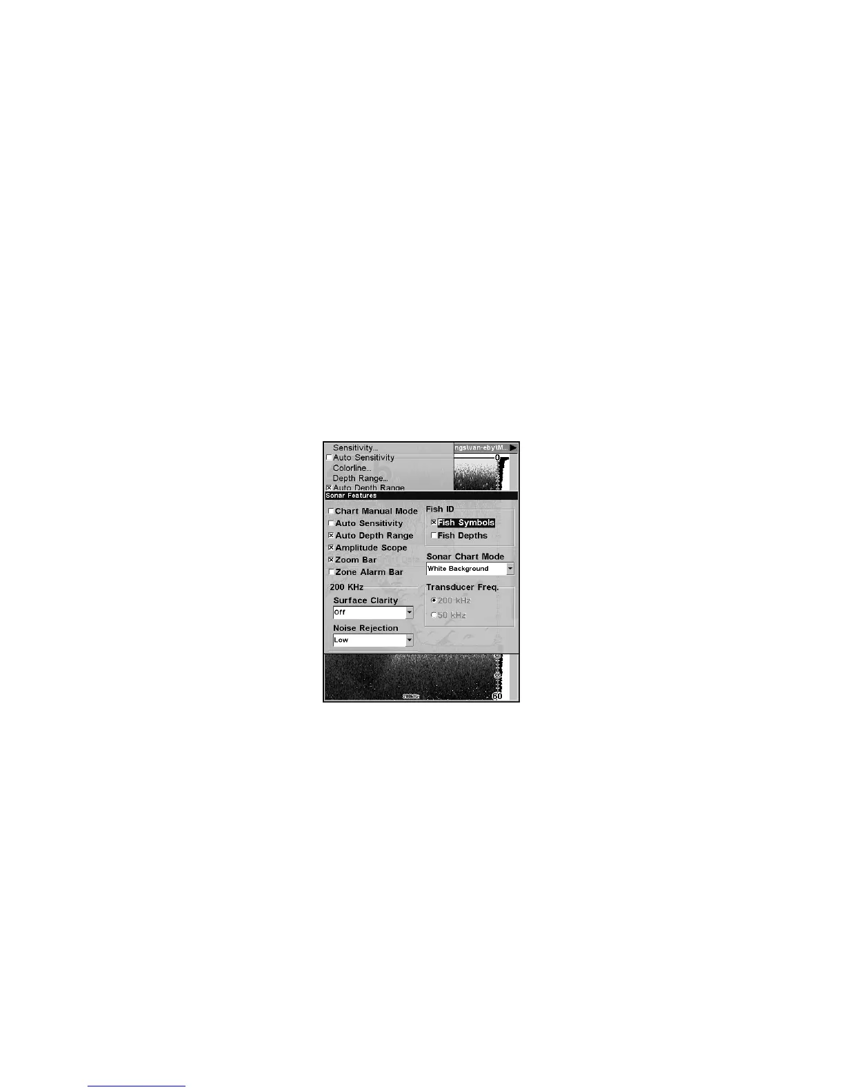 Sonar Features menu with Fish I.D. Symbols turned on.