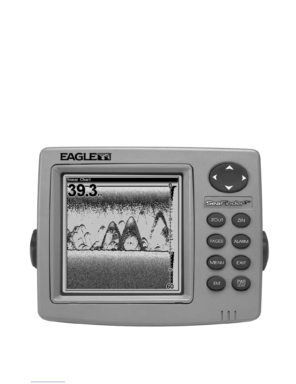 Sonar unit, front view, with keyboard. SeaFinder 320DF shown.