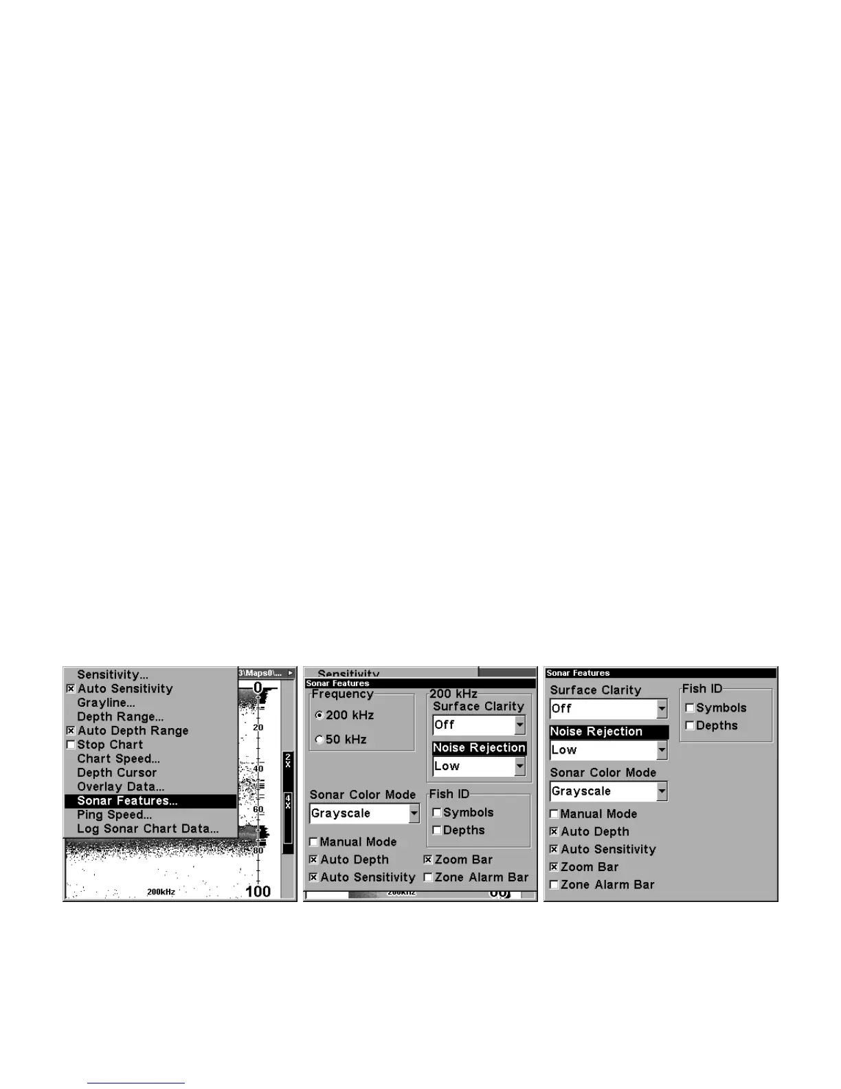 At left, Sonar Menu with Sonar Features selected. In the Sonar