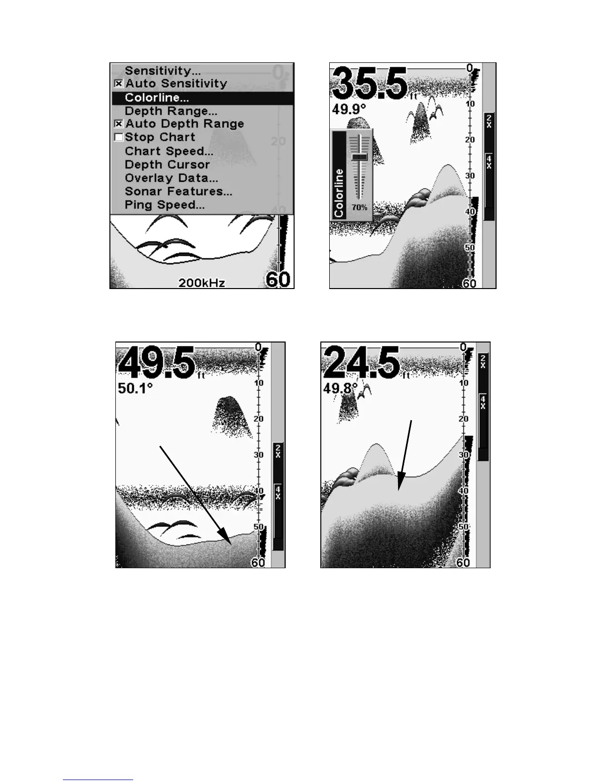 The wider ColorLine (right) indicates a harder, rocky bottom.