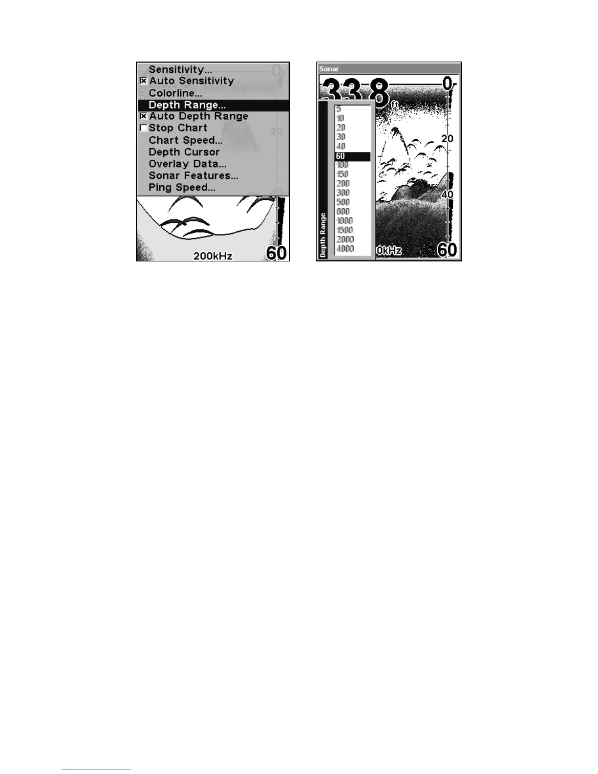 1. First, turn off automatic depth range. From the Sonar Page, press