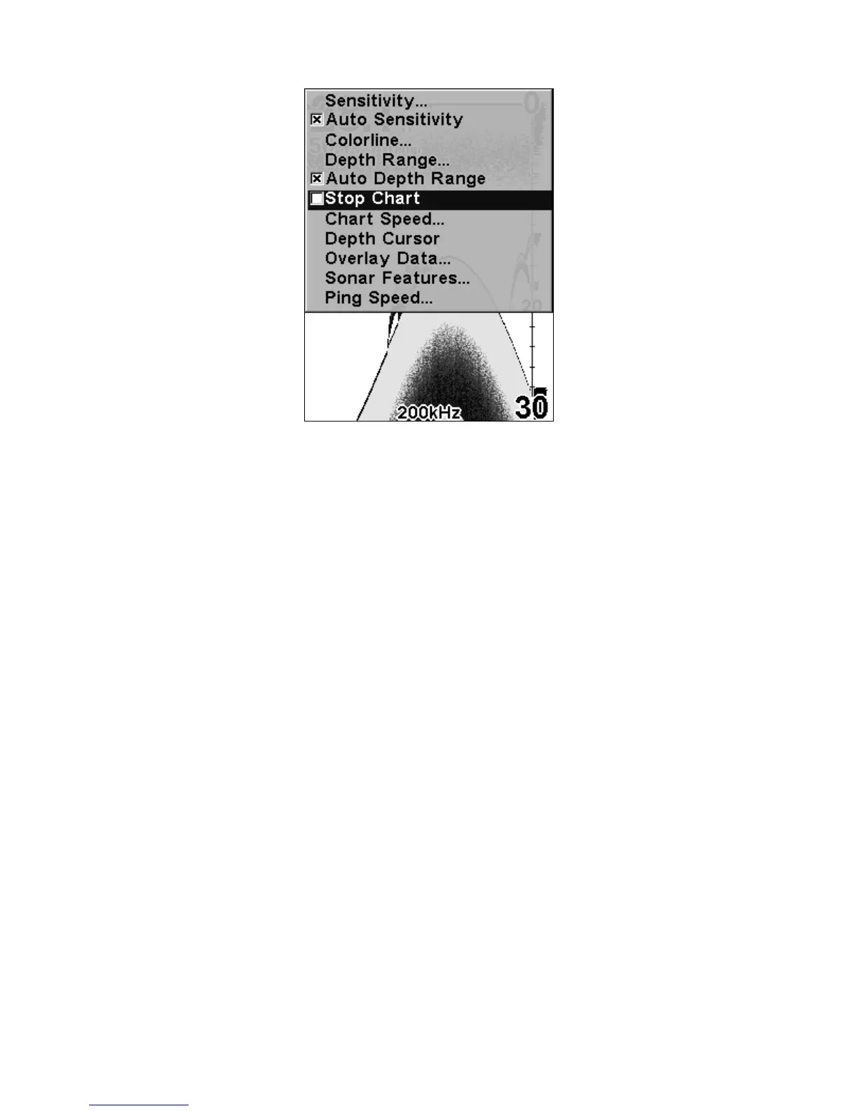 Sonar Menu with Stop Chart command selected. The box is unchecked,