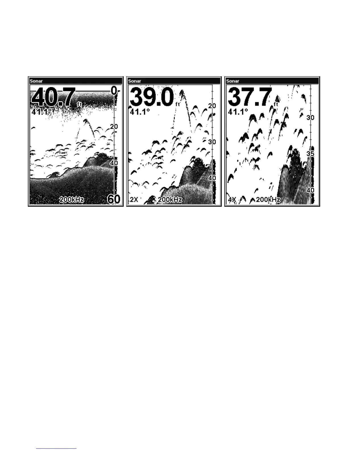 Sonar Page (left) in normal view. Same view (center) zoomed to 2X.