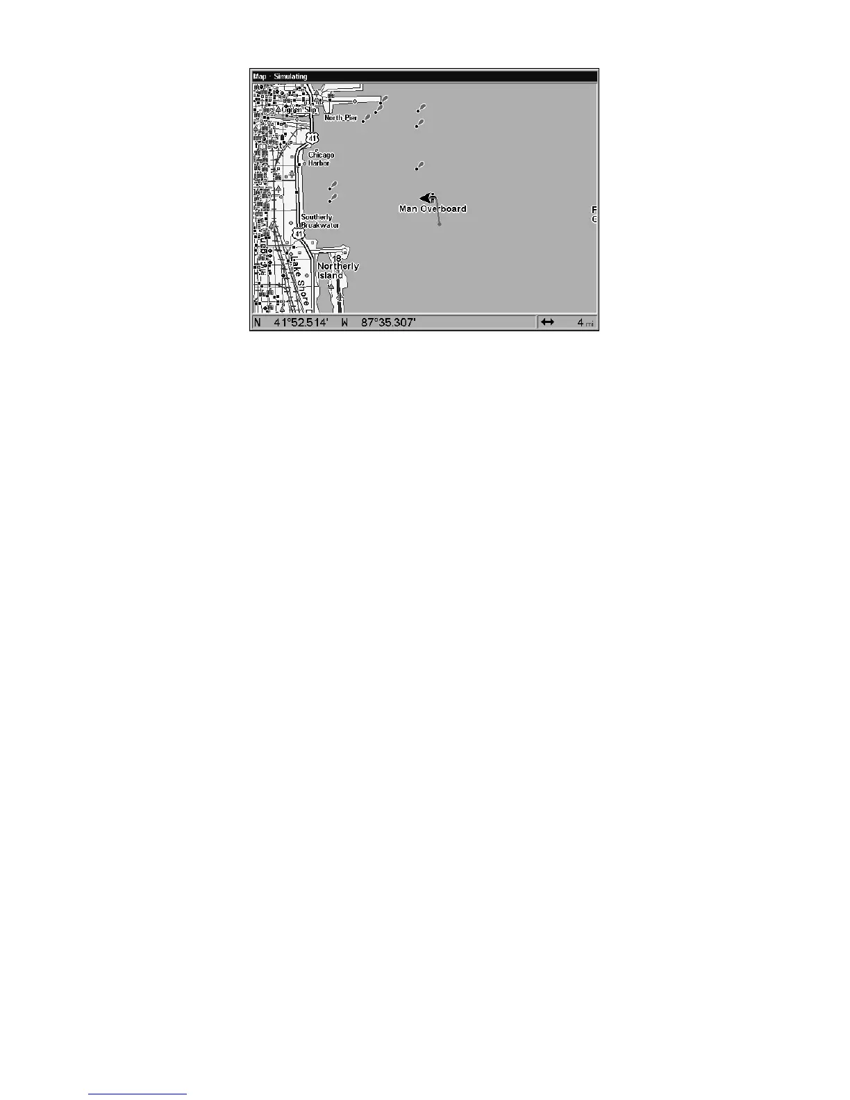 Map Page. The victim is astern of the vessel. The GPS shows which
