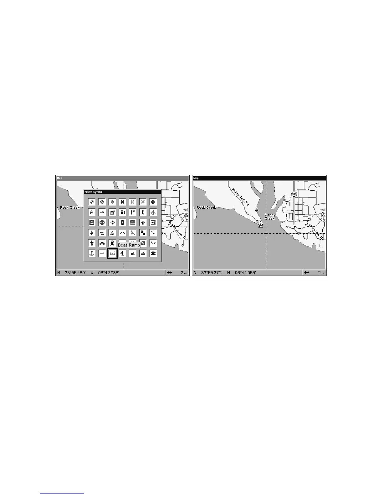 Select Icon Symbol menu (left); Boat Ramp icon on