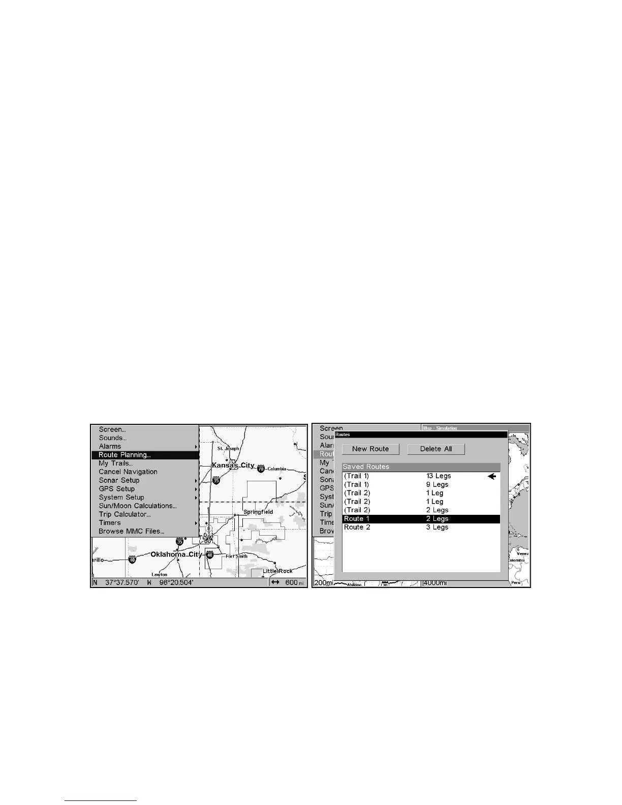 Route Planning command (left) will open the Route List screen (right).