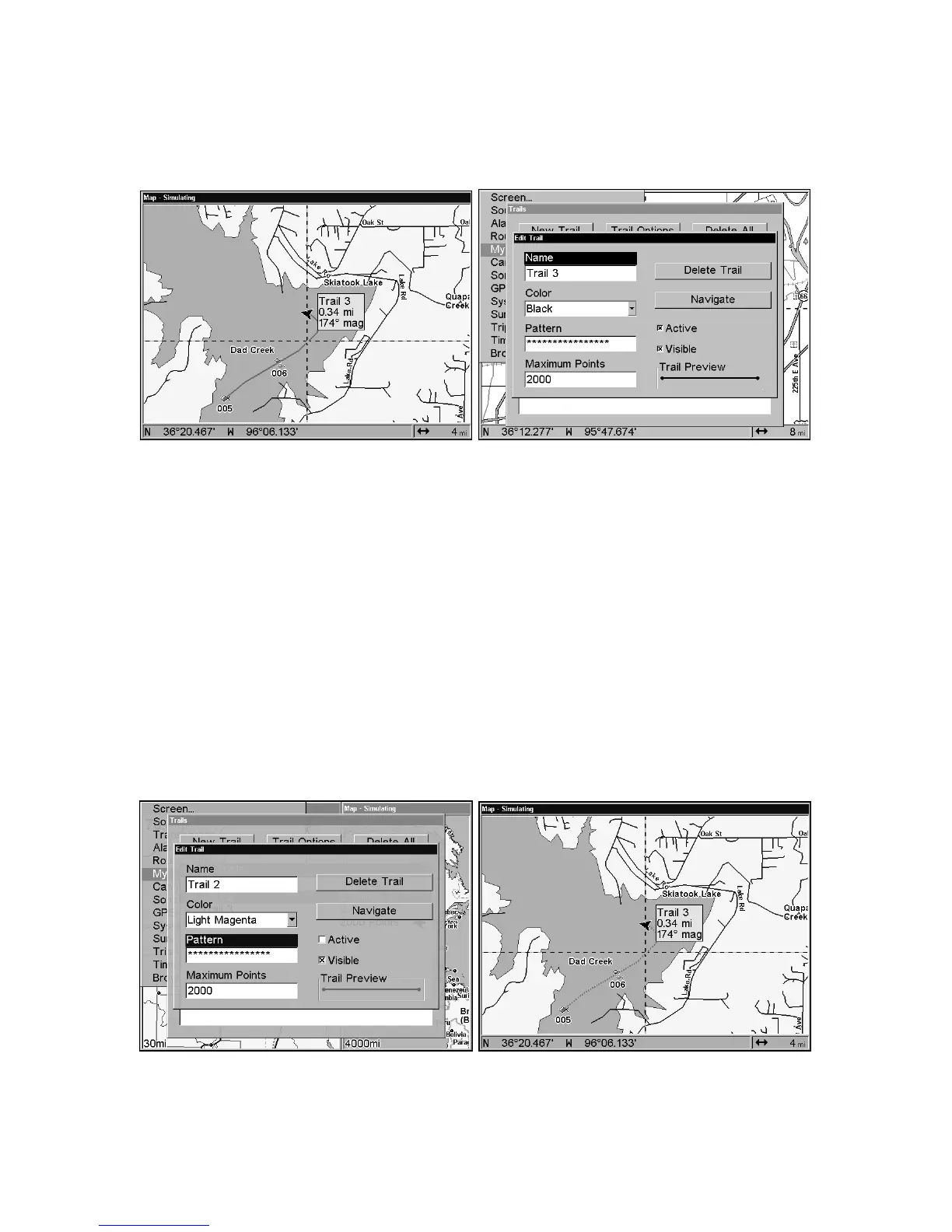 Edit Trail Menu with Pattern option selected (left). Edited trail with