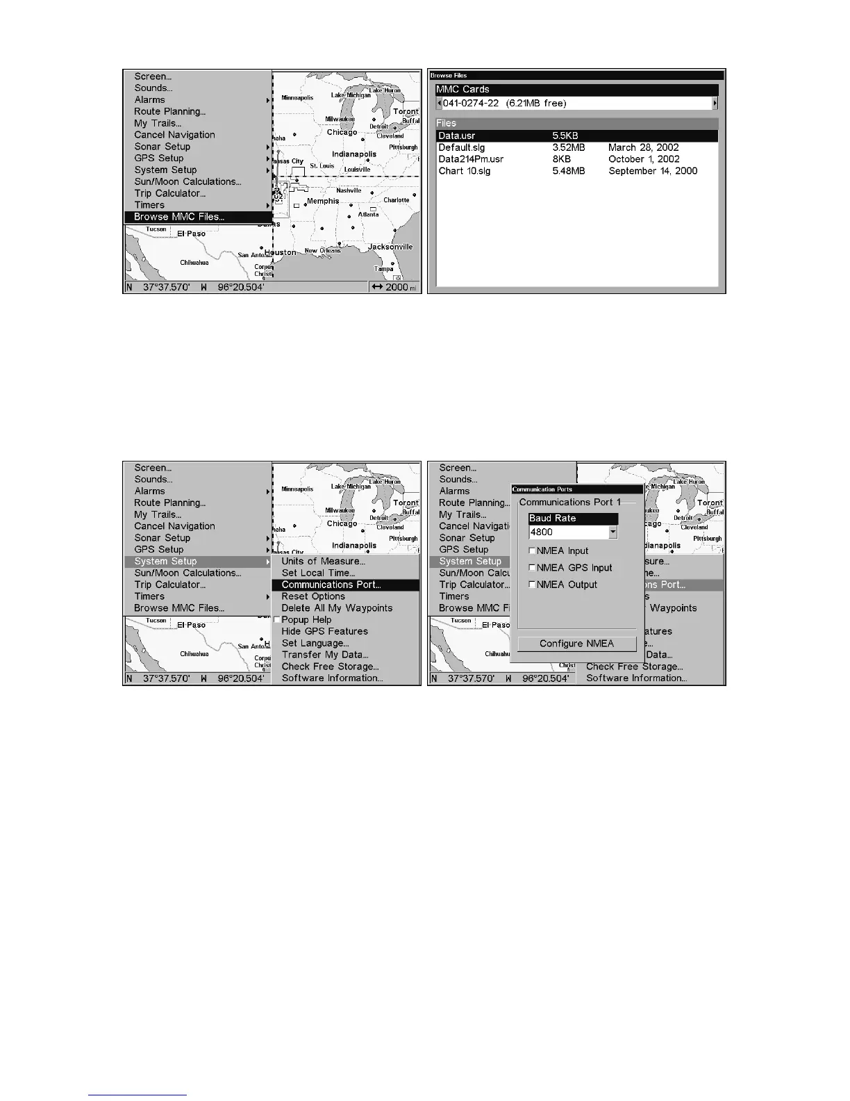 COMMUNICATIONS PORT|ENT|↓ to CONFIGURE NMEA|ENT.