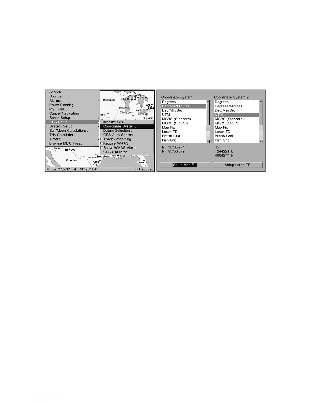and thousandths of a minute (36° 28.700'); or degrees, minutes, seconds