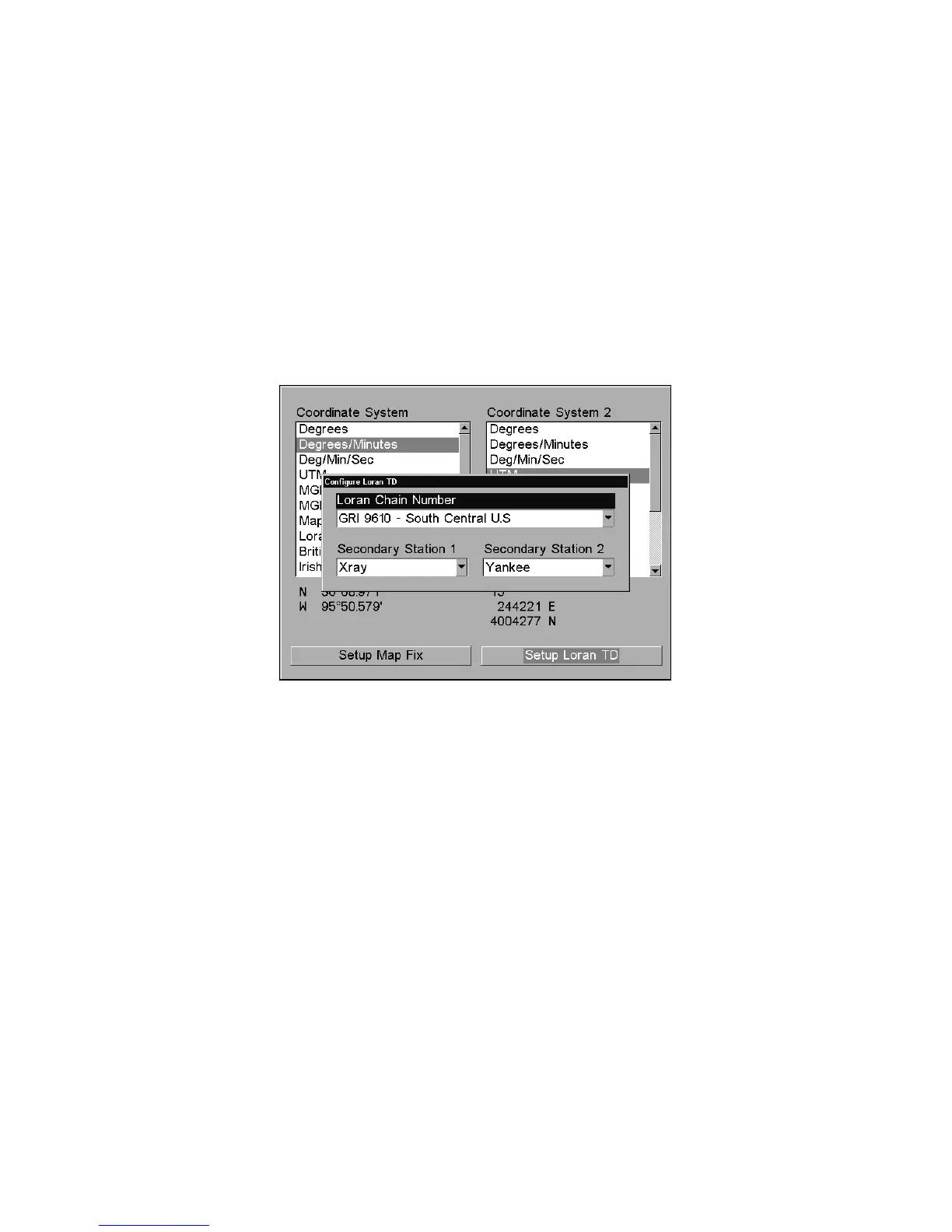 selecting "Setup Loran TD" at the bottom of the "Coordinate