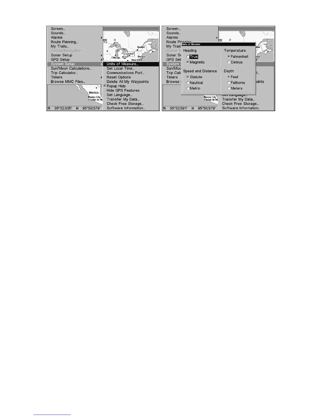 To set Heading: Press ↑ or ↓ to change the heading type, then press