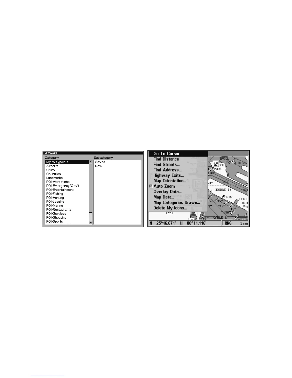 1. From the Map Page, press MENU|↓ to FIND ADDRESS|ENT.