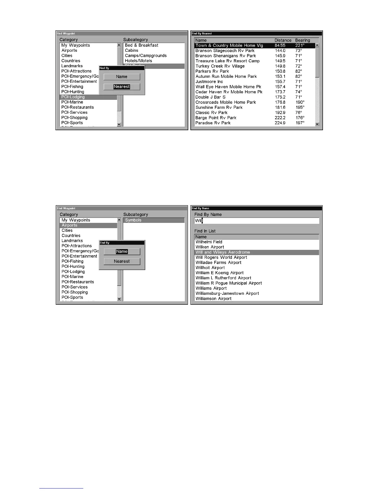 Find by Nearest (left) with POI list (right).