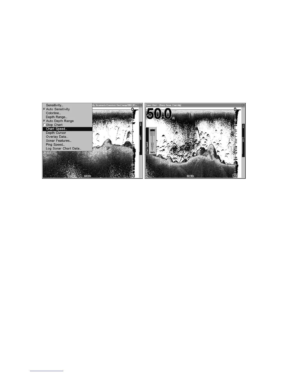 1. From the Sonar Page, press MENU|↓ to CHART SPEED|ENT.
