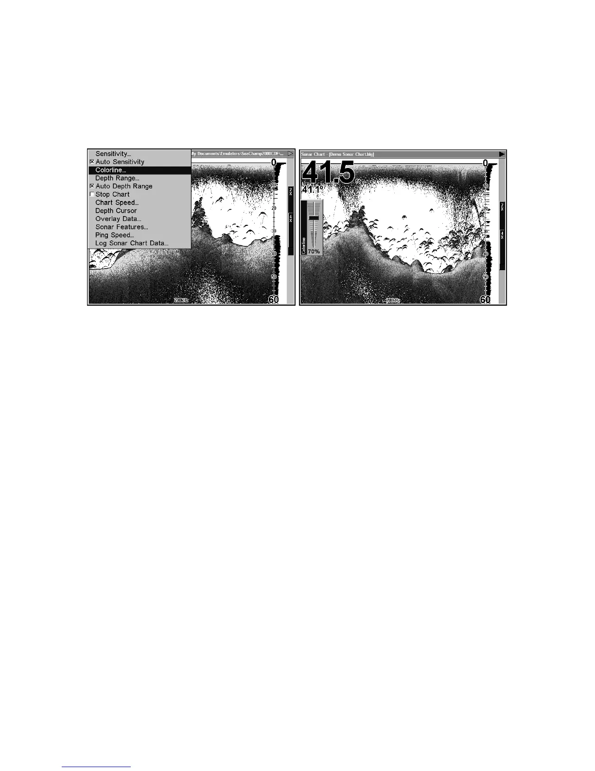Sonar Page menu with ColorLine command selected (left);.