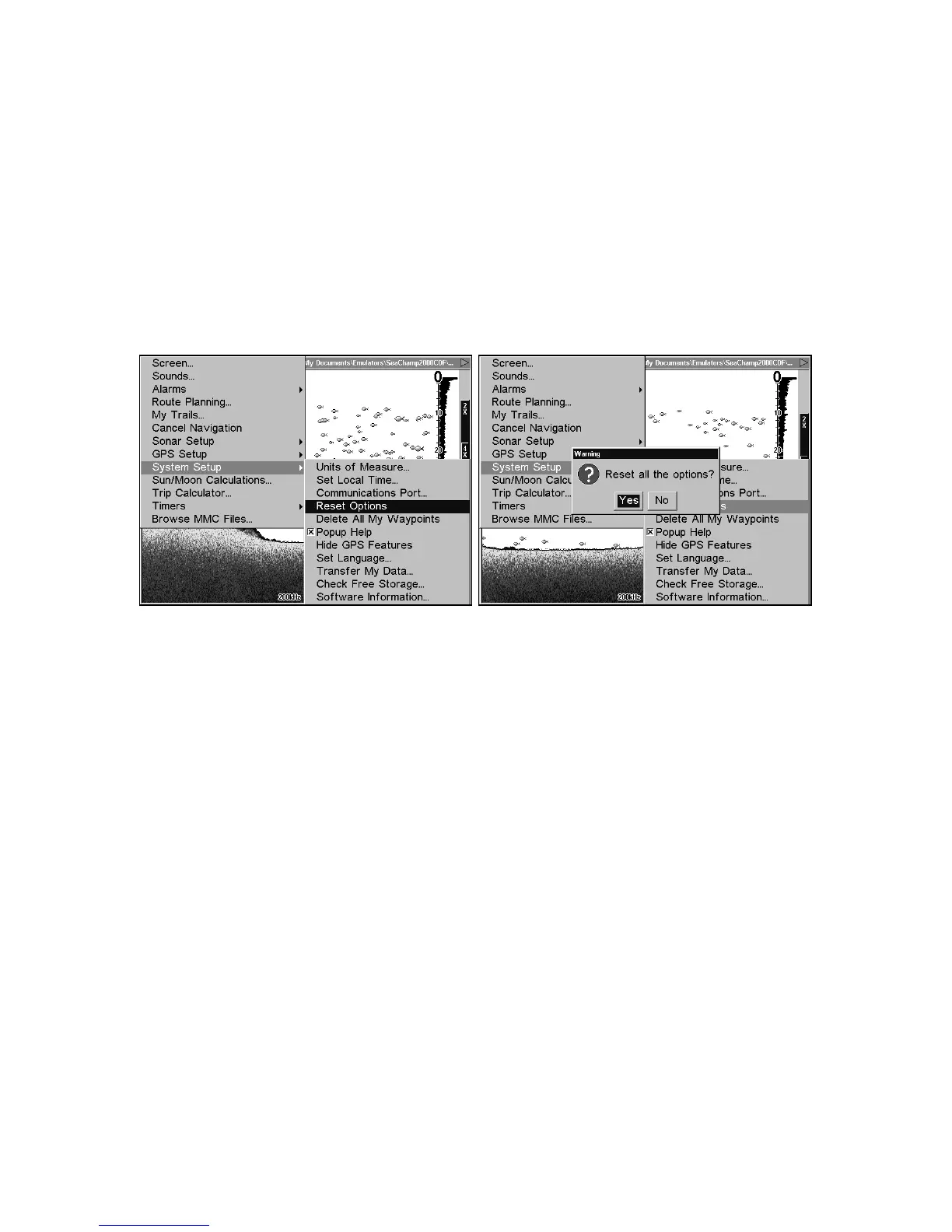 Reset Options does not erase any waypoints, routes, plot trails, or