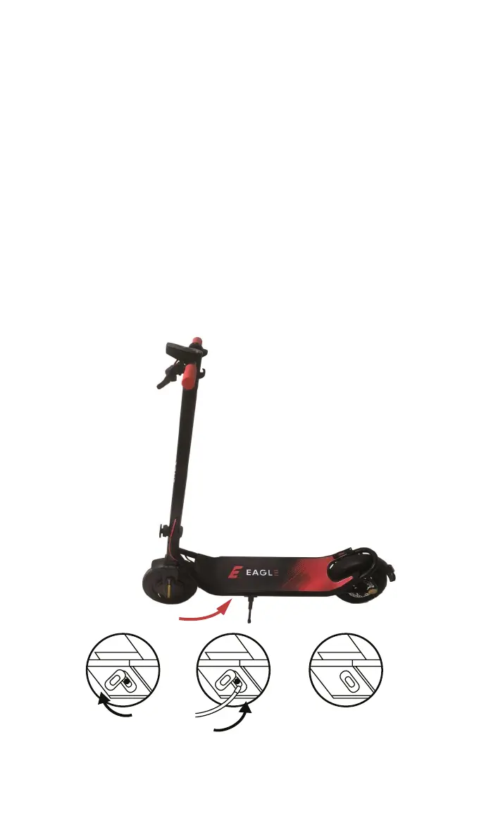 latch, 2- put down the stem slowly, 3 -Fold stem