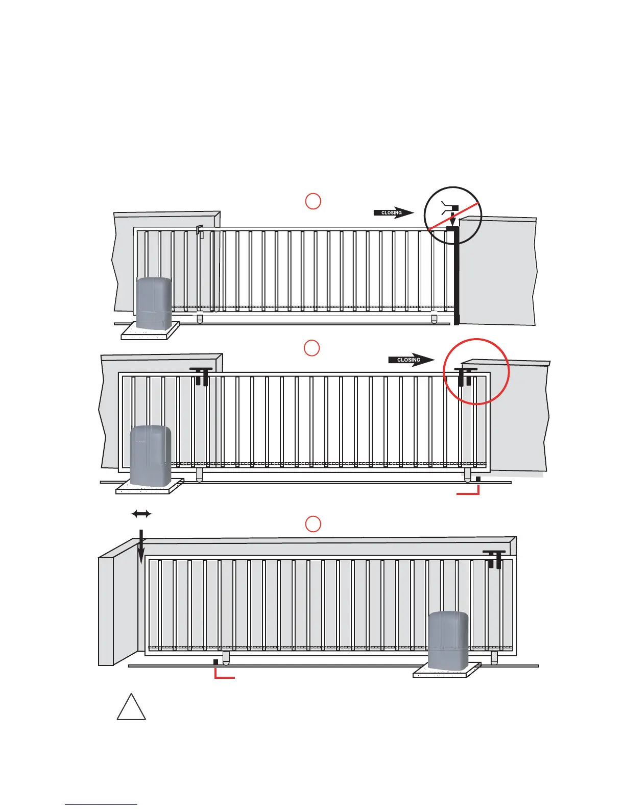 rollers as shown in Example B. Also when fully open the end of the sliding gate must stop at least 3"