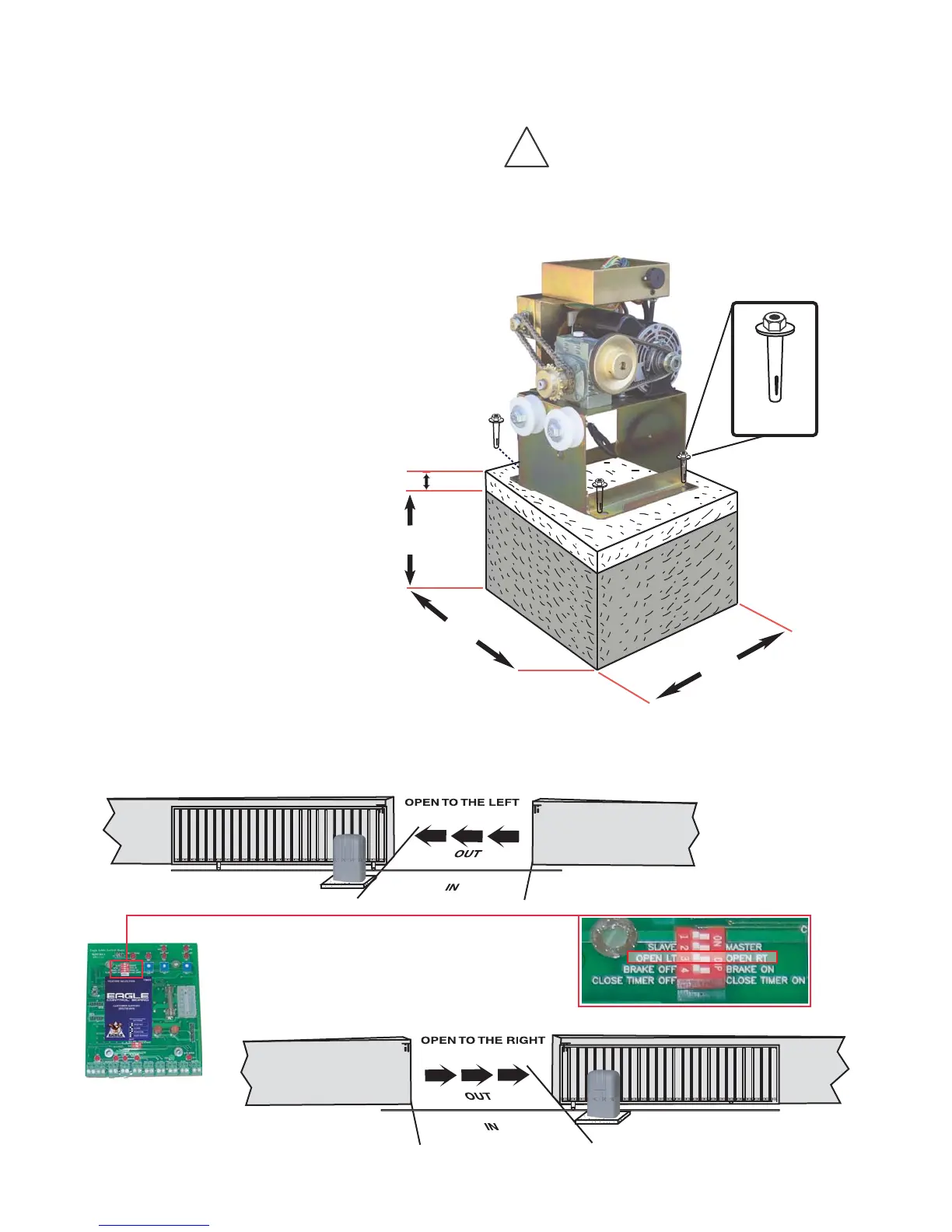 Be sure that the operator is installed in a level and paralleled position and is properly secured.