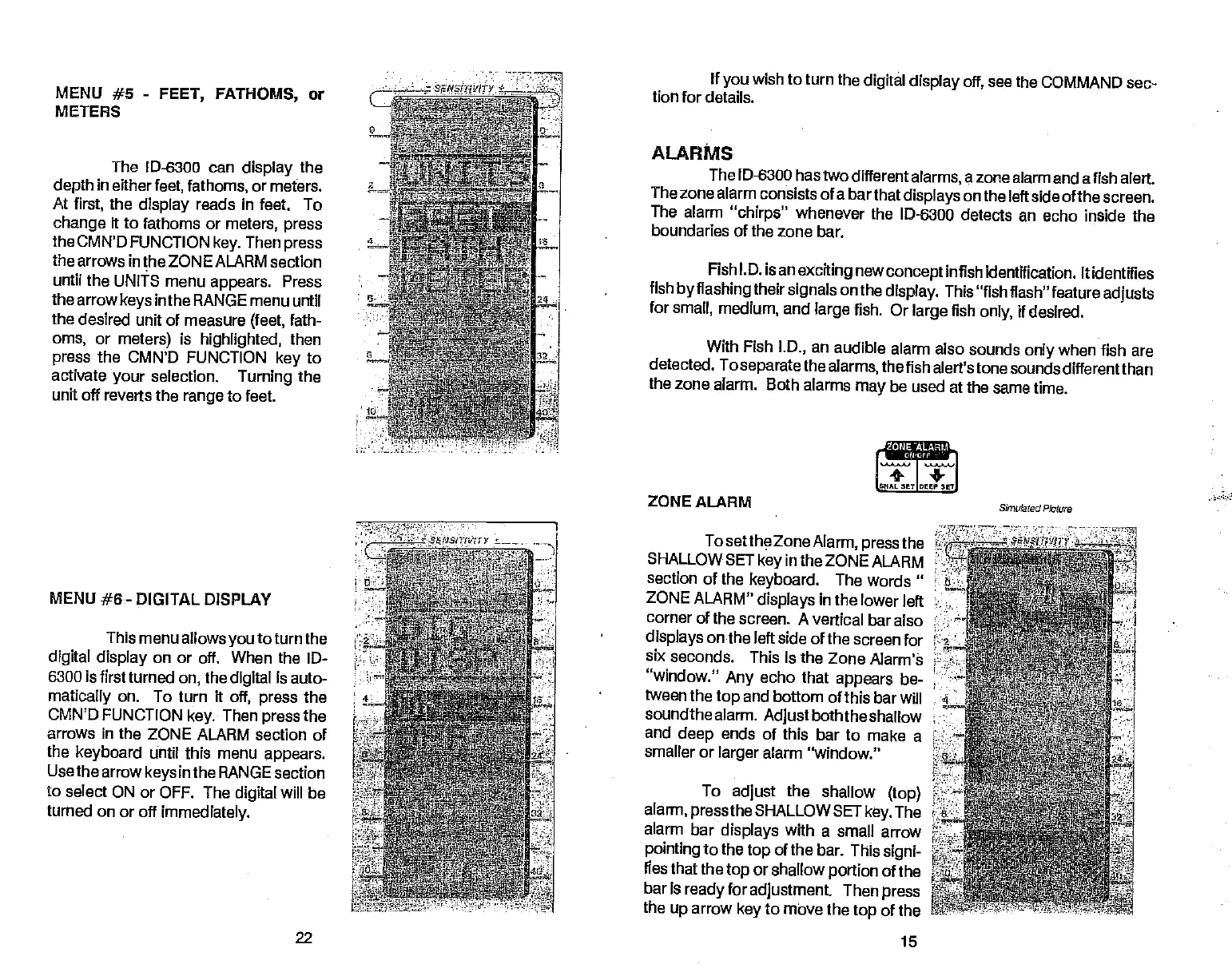Eagle ID-6300 - MENU #5 - FEET, FATHOMS, or METERS; MENU #6-DIGITAL DISPLAY; ZONE ALARM