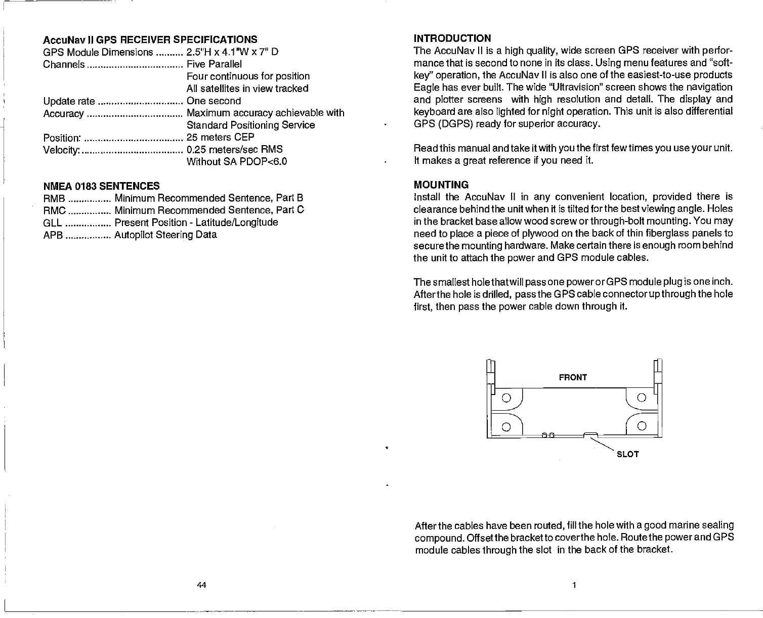 AccuNav II GPS RECEIVER SPECIFICATIONS