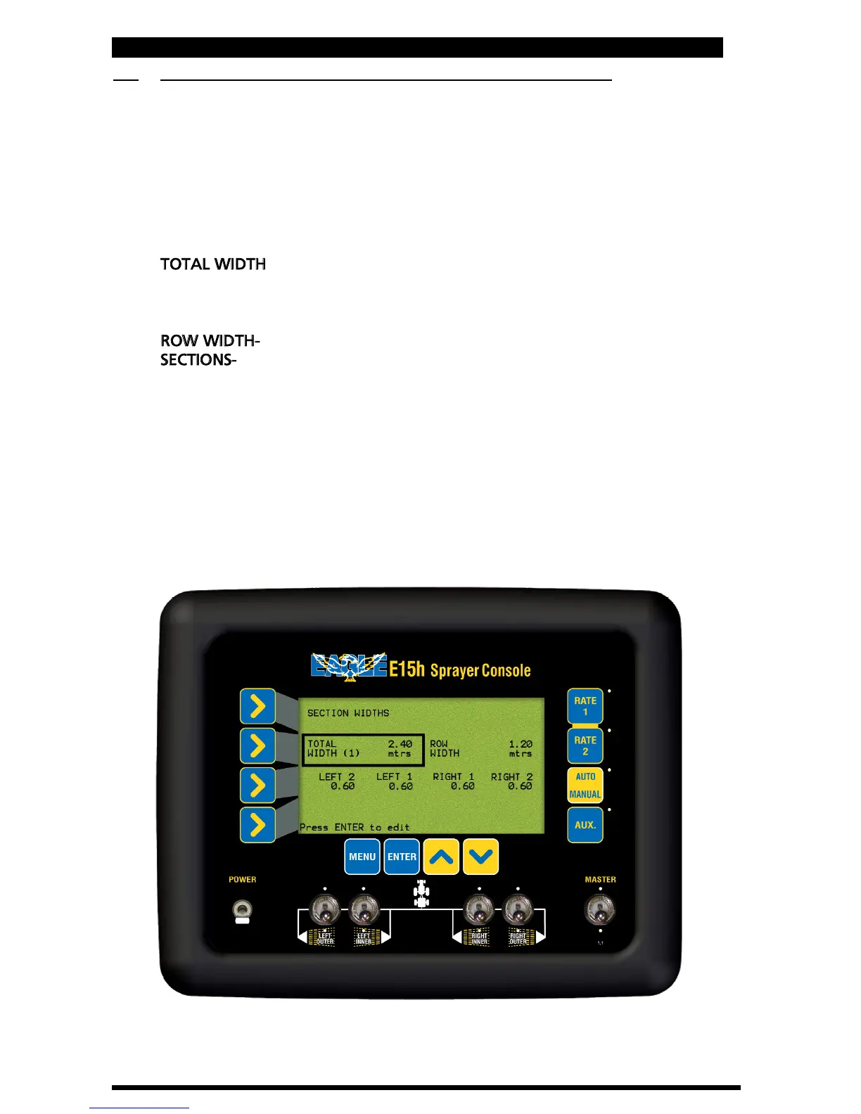 • Press ENTER to advance to the next screen (Section Widths Setup), as