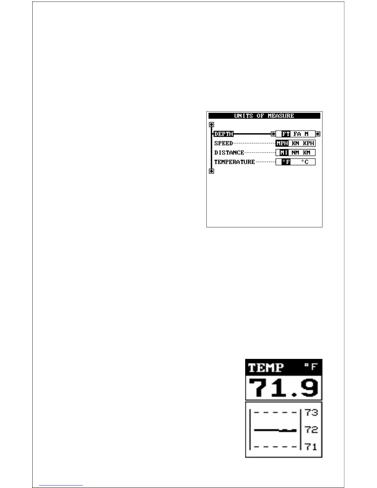The Optima normally shows the depth