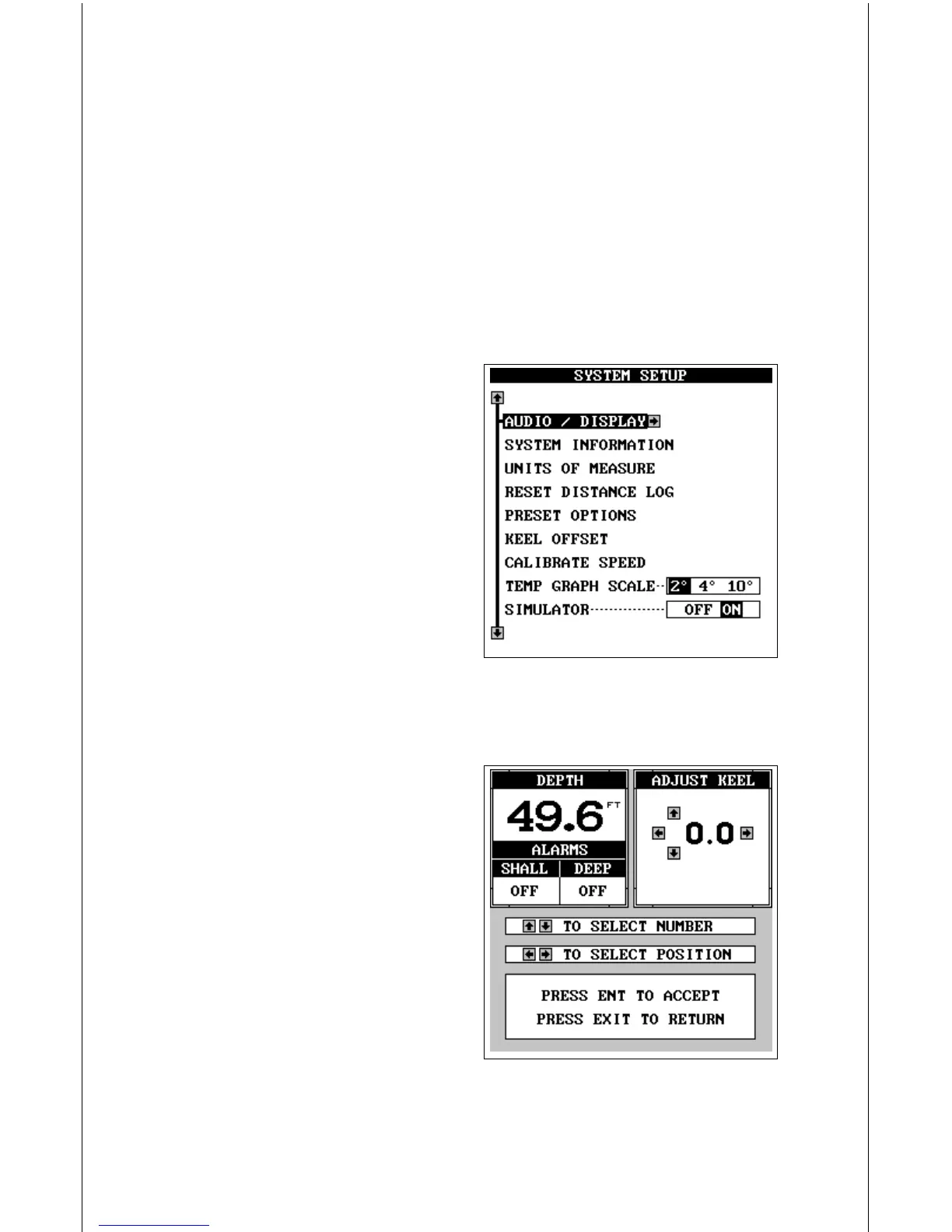 the screen. The keel offset shows in the upper right corner. In this example,