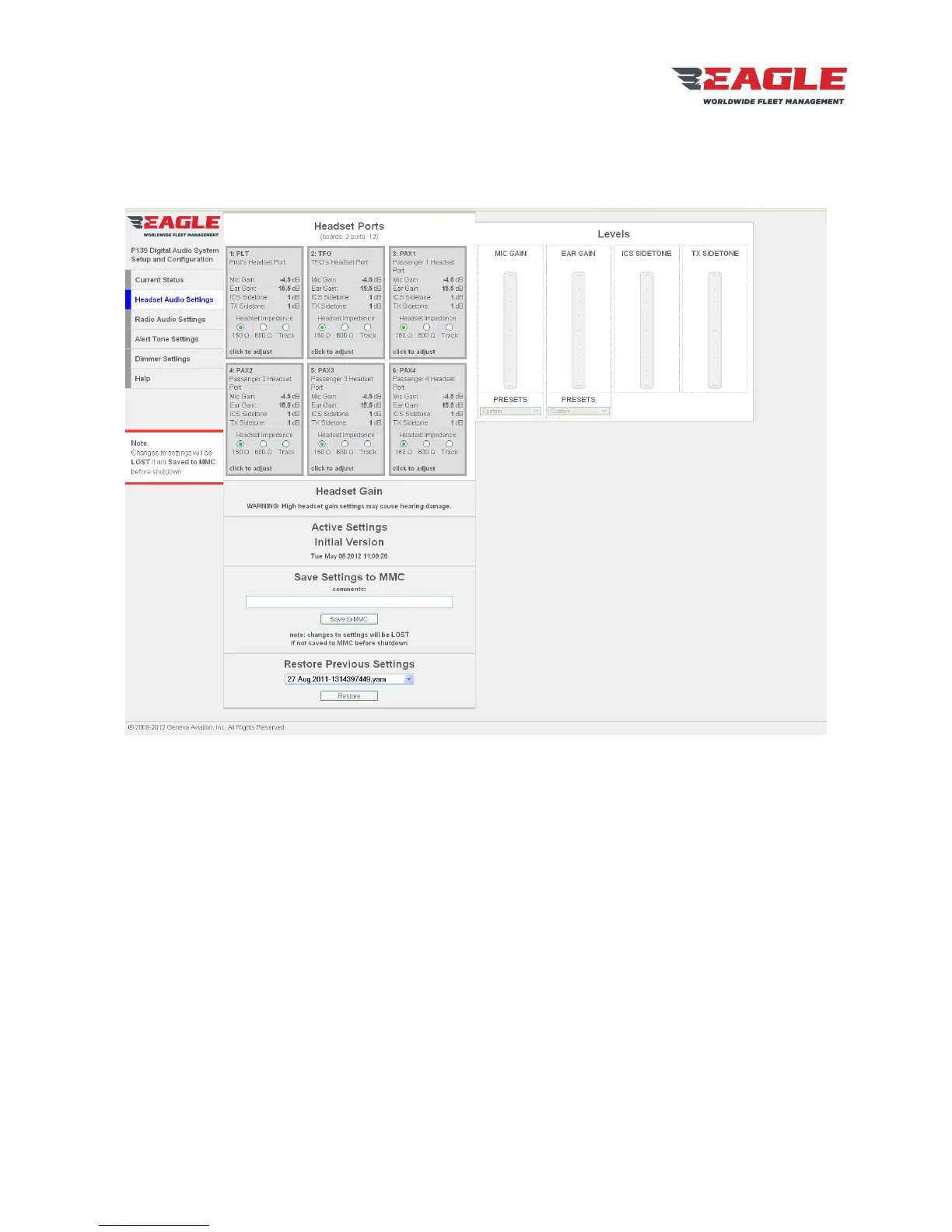 The Headset Audio Settings Page (Figure 6) gives access to the user-adjustable settings for each