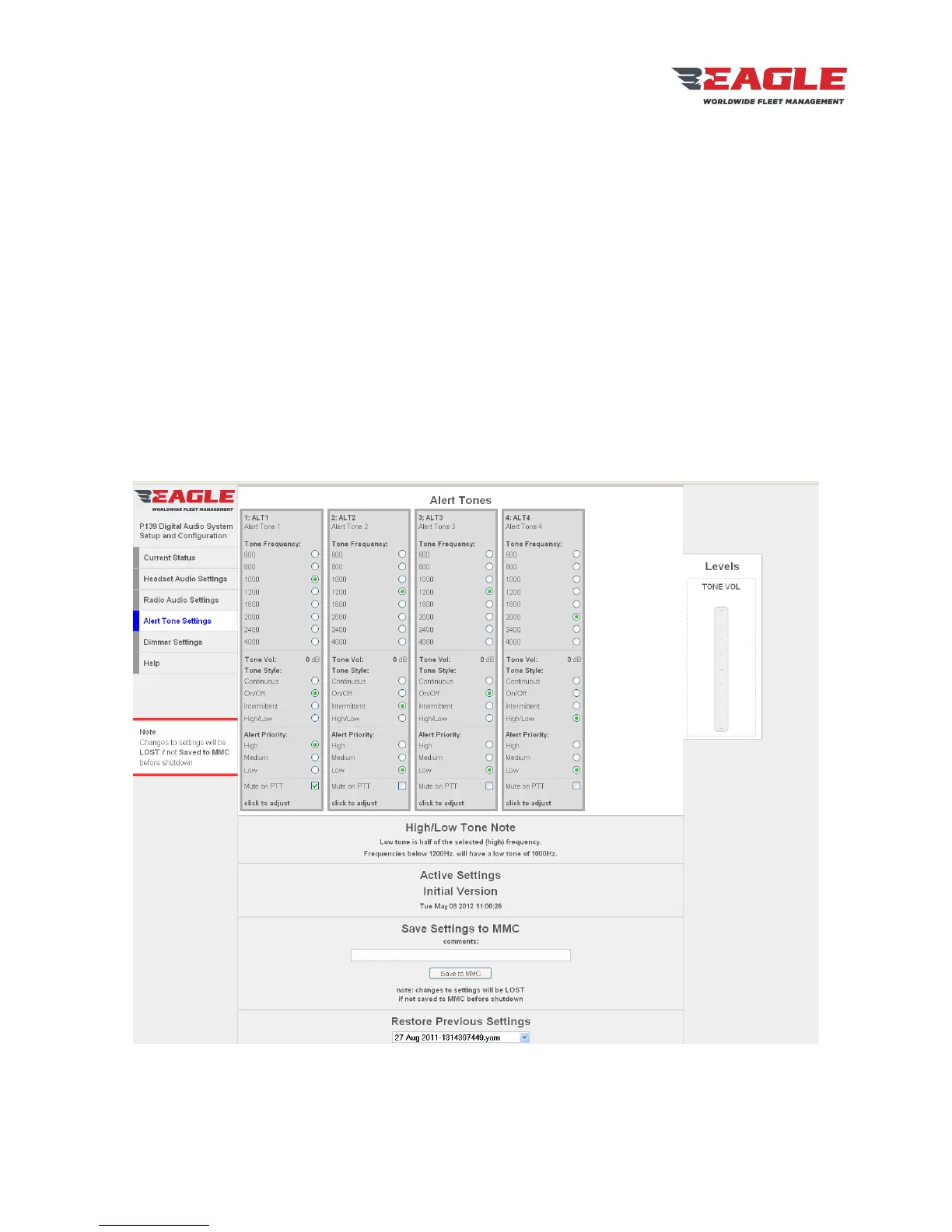 The Alert Tone Settings Page (Figure 9) gives access to the user-adjustable settings for each alert tone
