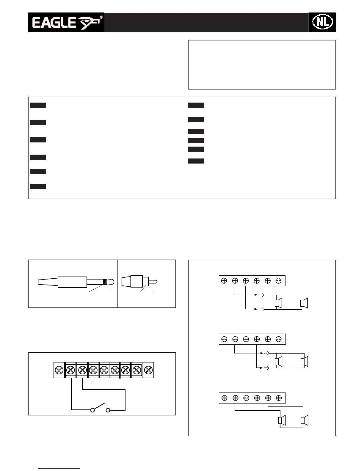 mogen niet tegelijk gebruikt worden d.w.z. dat wanneer u 100V line luidsprekers gebruikt u