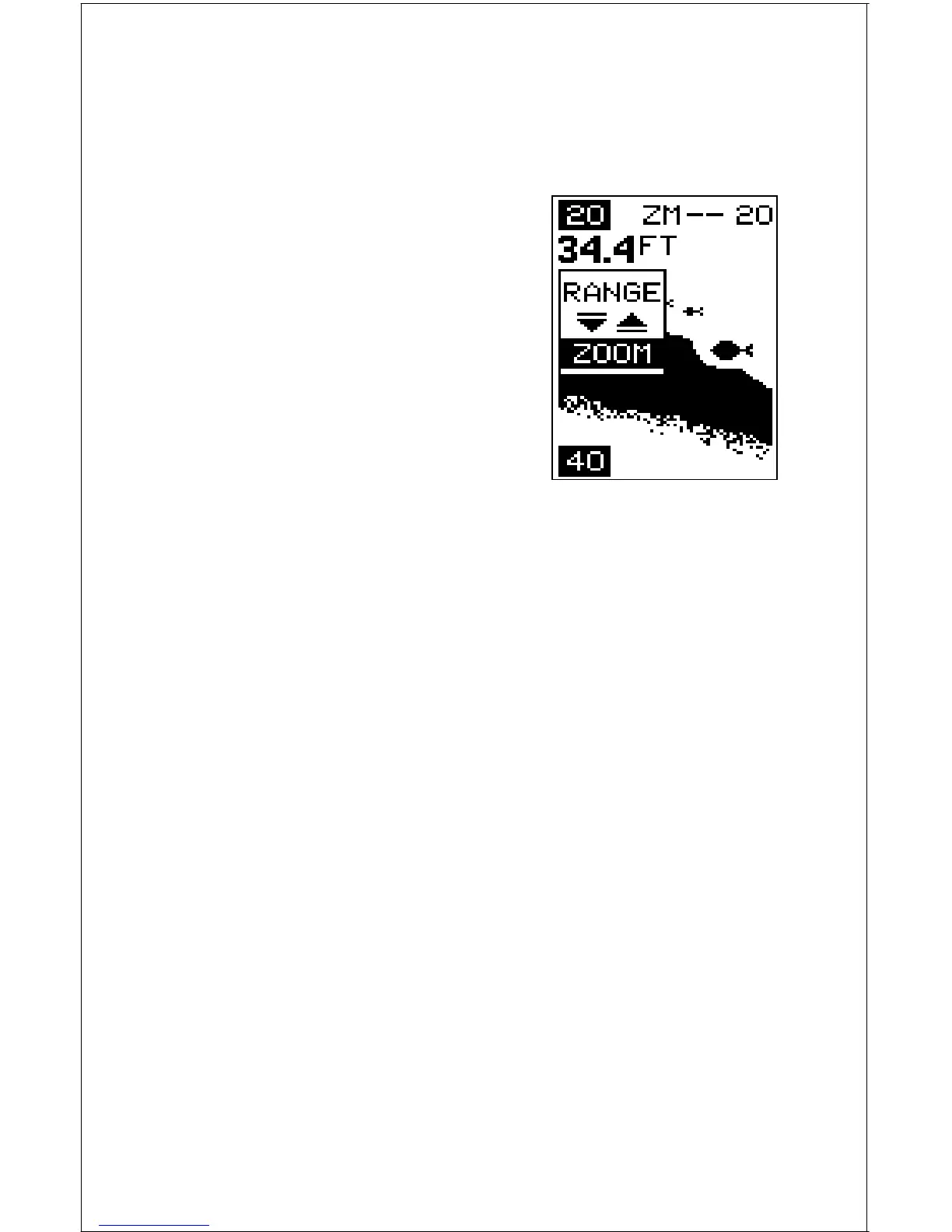 To turn the zoom feature off, press the menu key until the RANGE/ZOOM