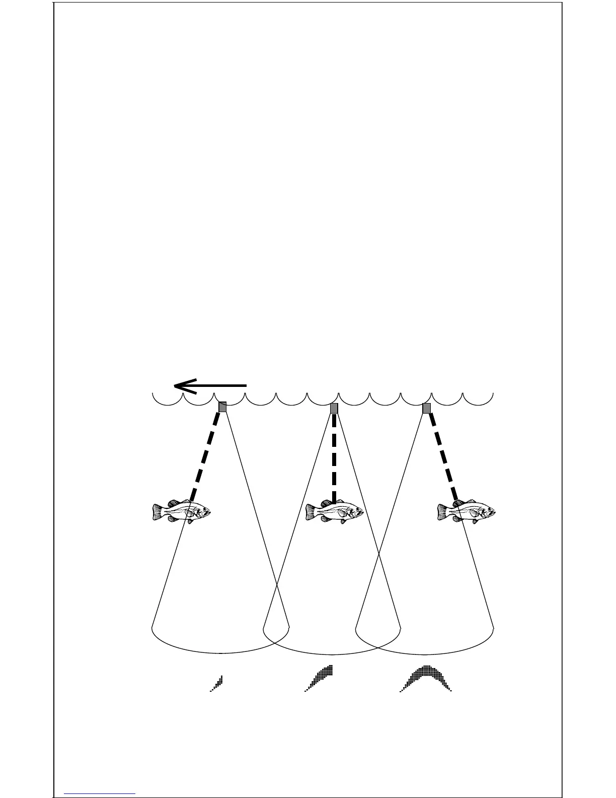 passes over a fish. The distance to a fish when the cone first strikes it is