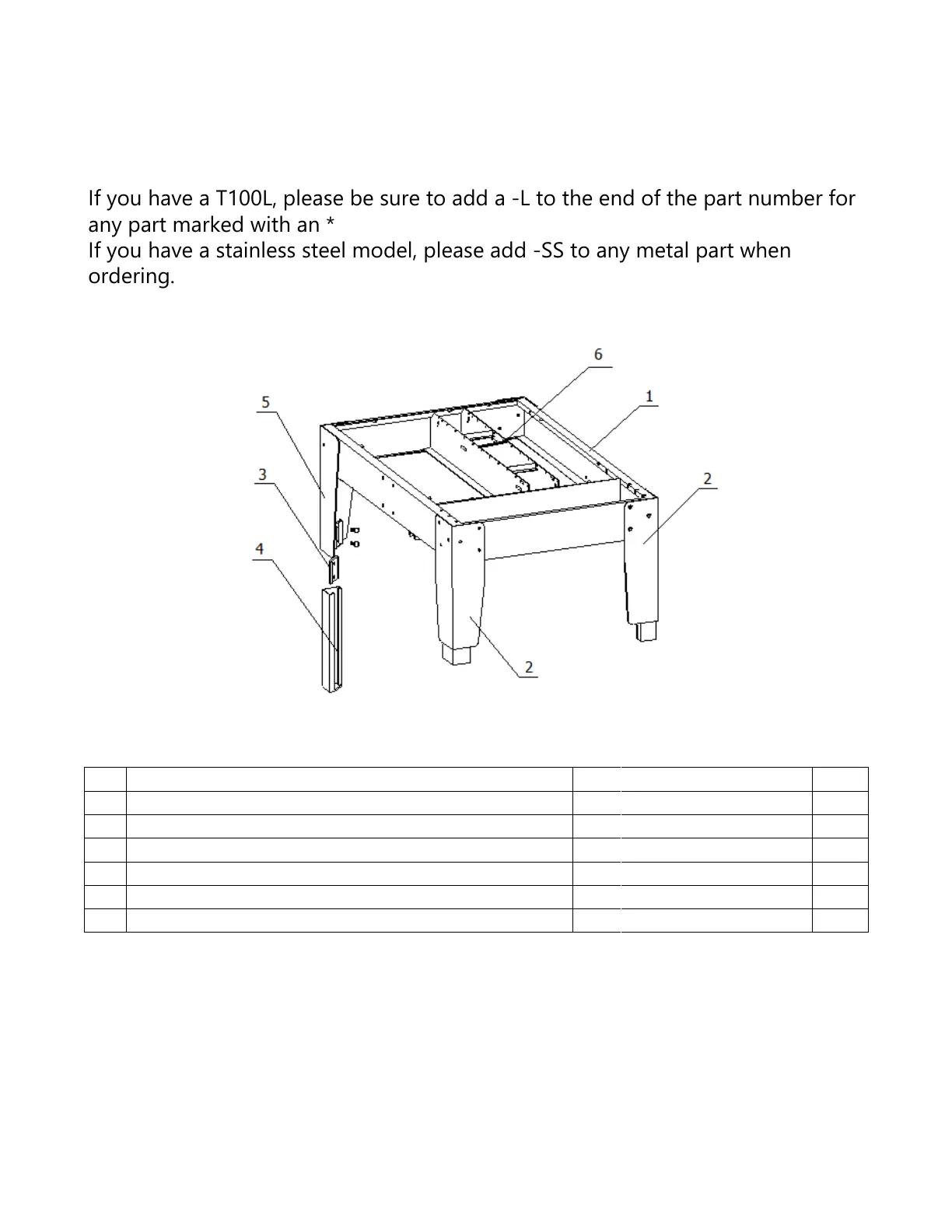 If you have a T100L, please be sure to add a -L to the end of the part number for