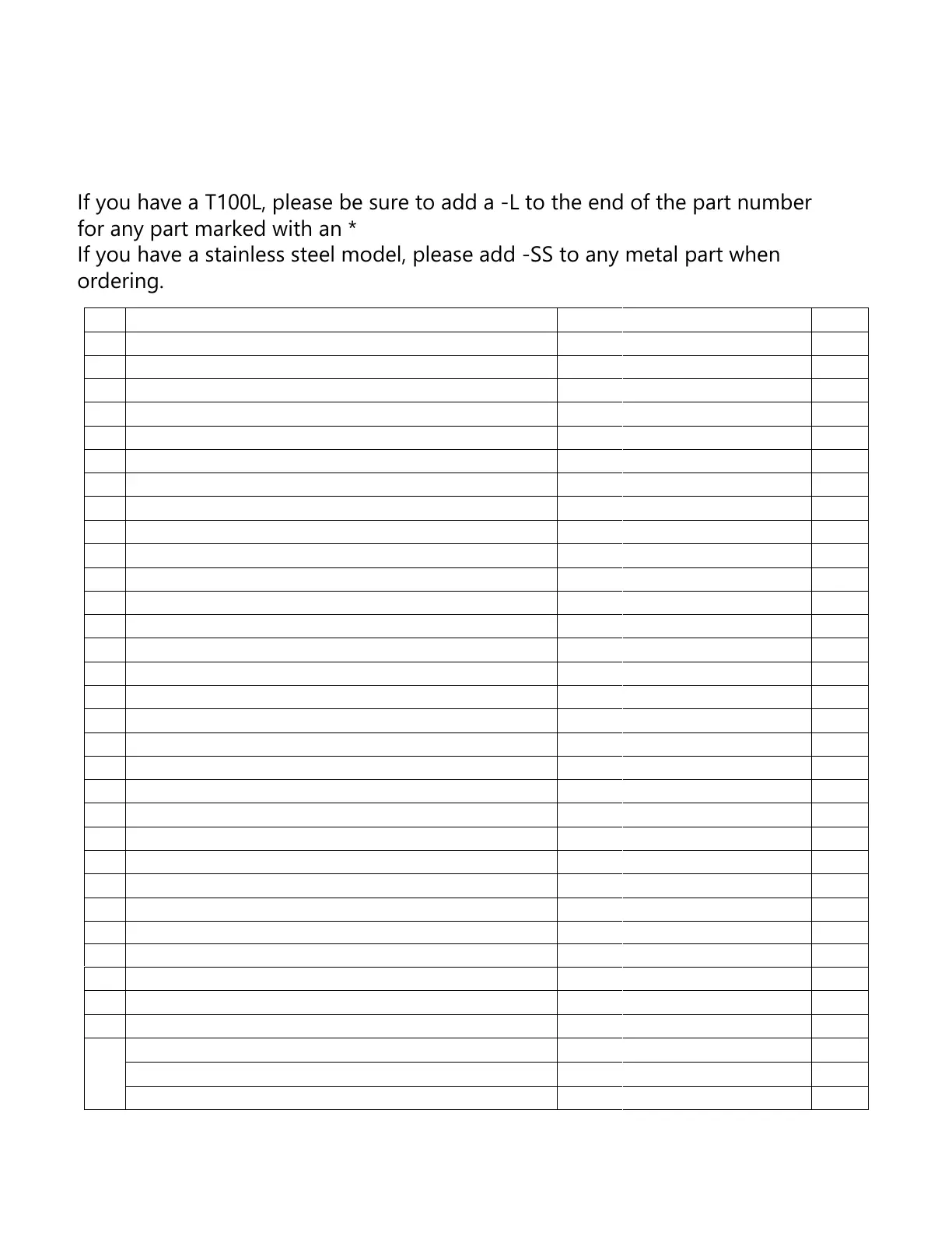 If you have a T100L, please be sure to add a -L to the end of the part number