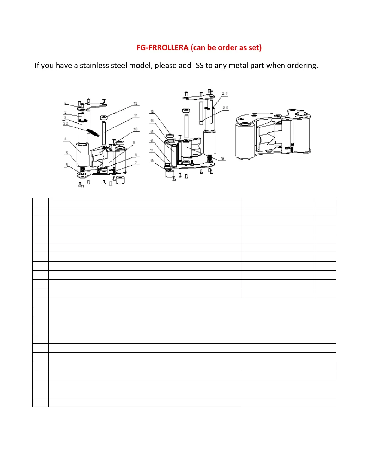 If you have a stainless steel model, please add -SS to any metal part when ordering.