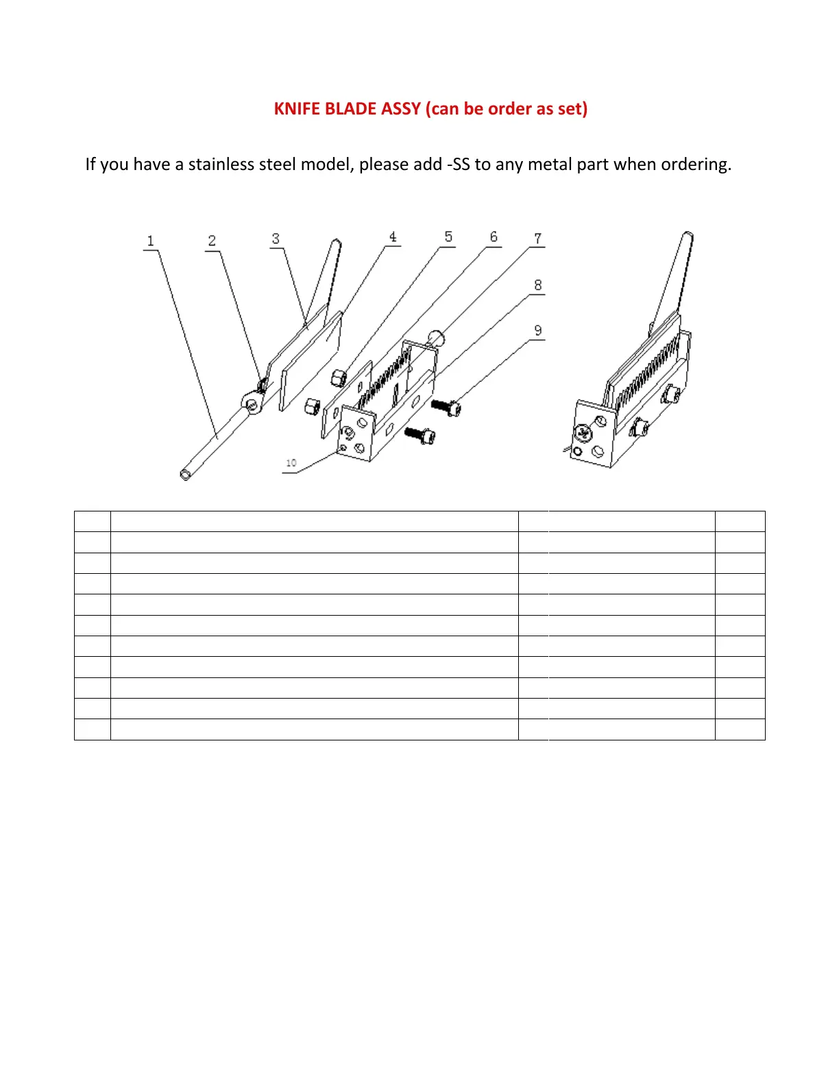 6.11 Knife Blade Assembly - KNIFE BLADE ASSY (can be order as set)