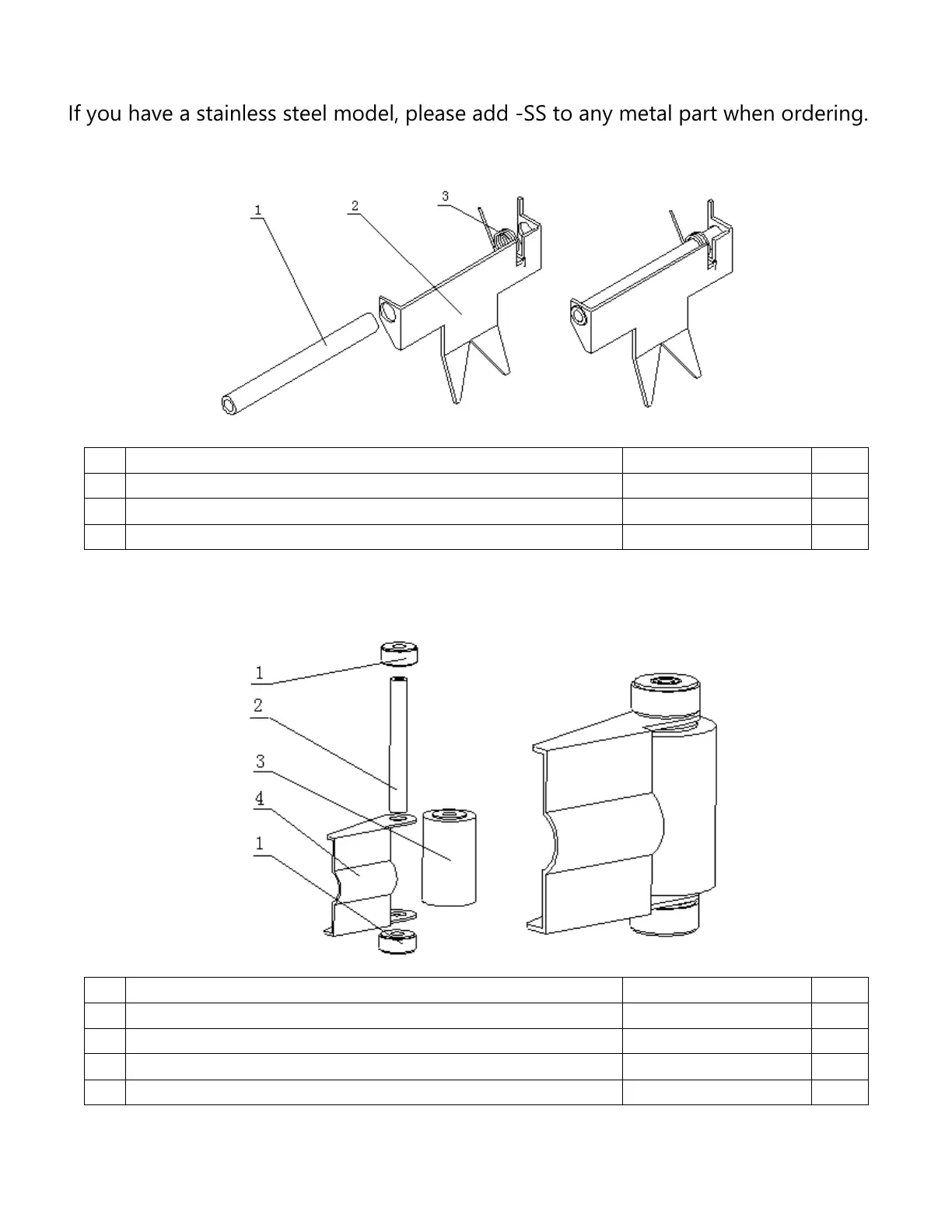 If you have a stainless steel model, please add -SS to any metal part when ordering.