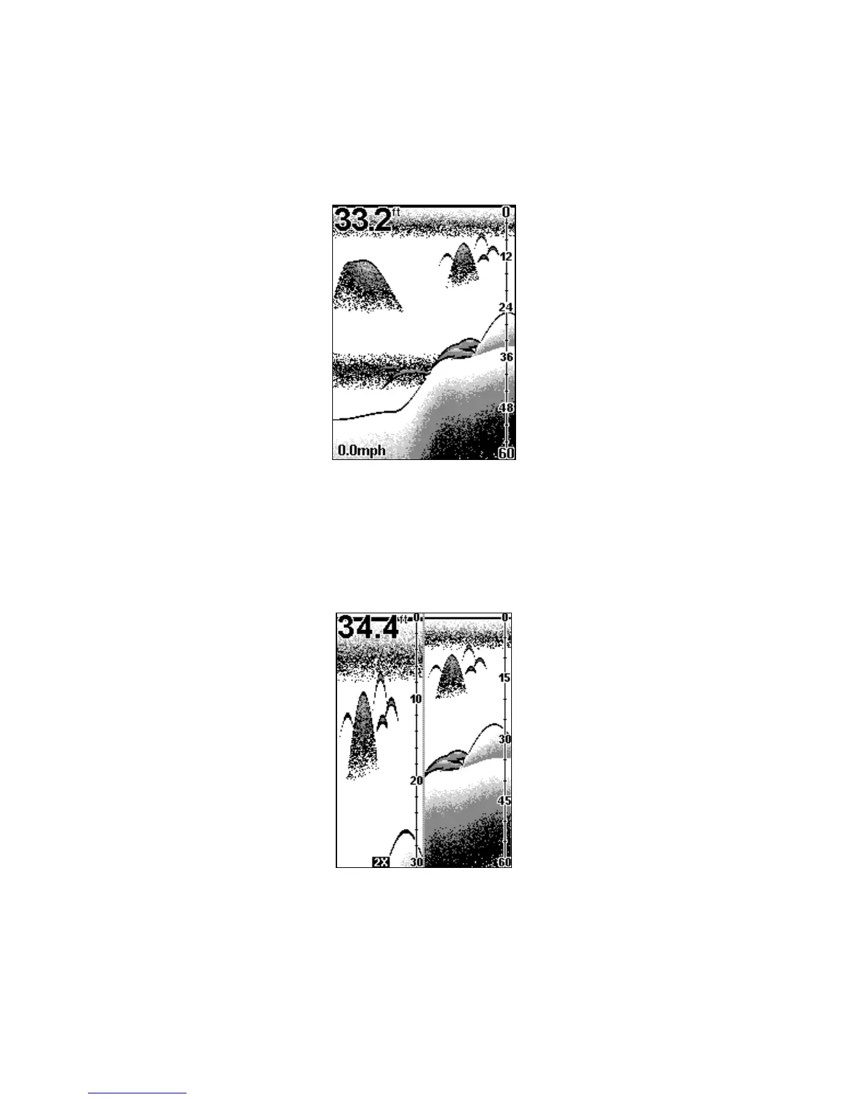 or "zoomed" version of the echoes appearing on the right side. A zoom mes-