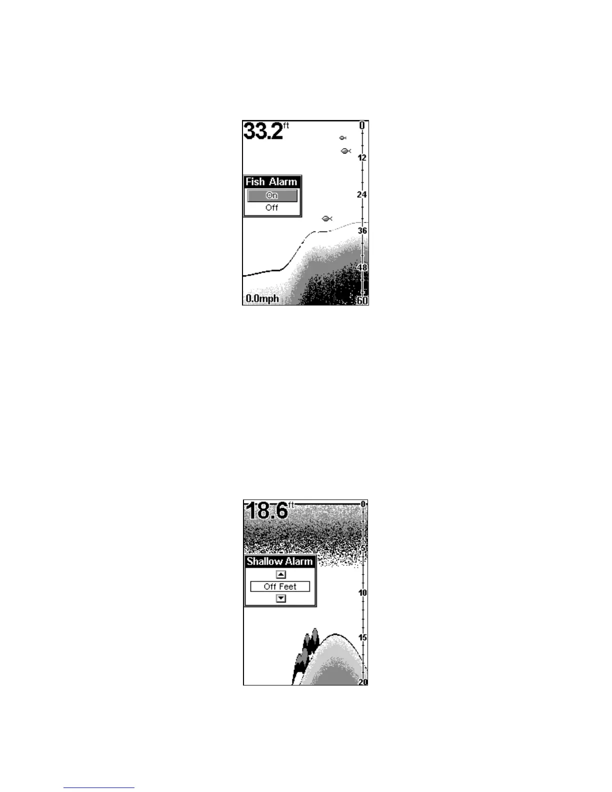 echoes will activate these alarms. The depth alarms consist of a shallow